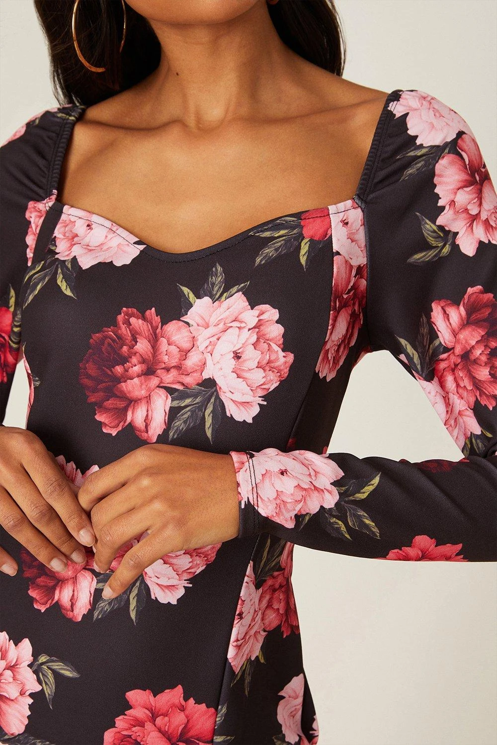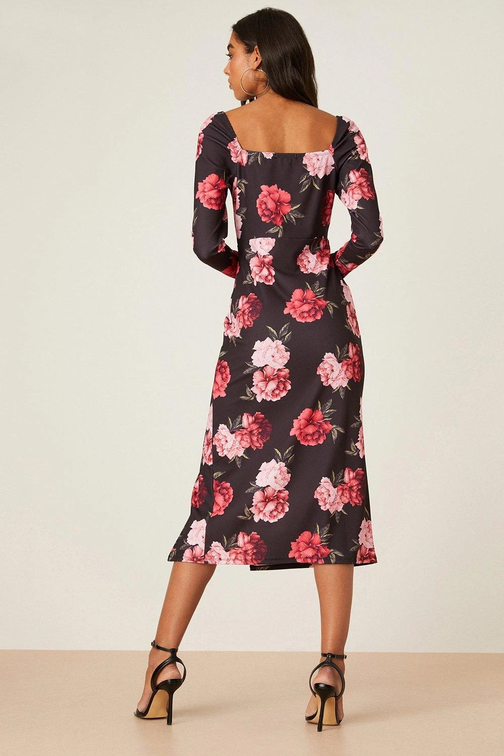 Dorothy Perkins Black Rose Print Scuba Sweetheart Midi Dress