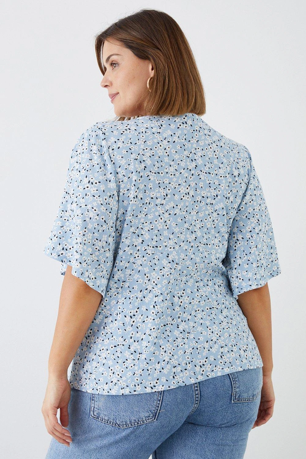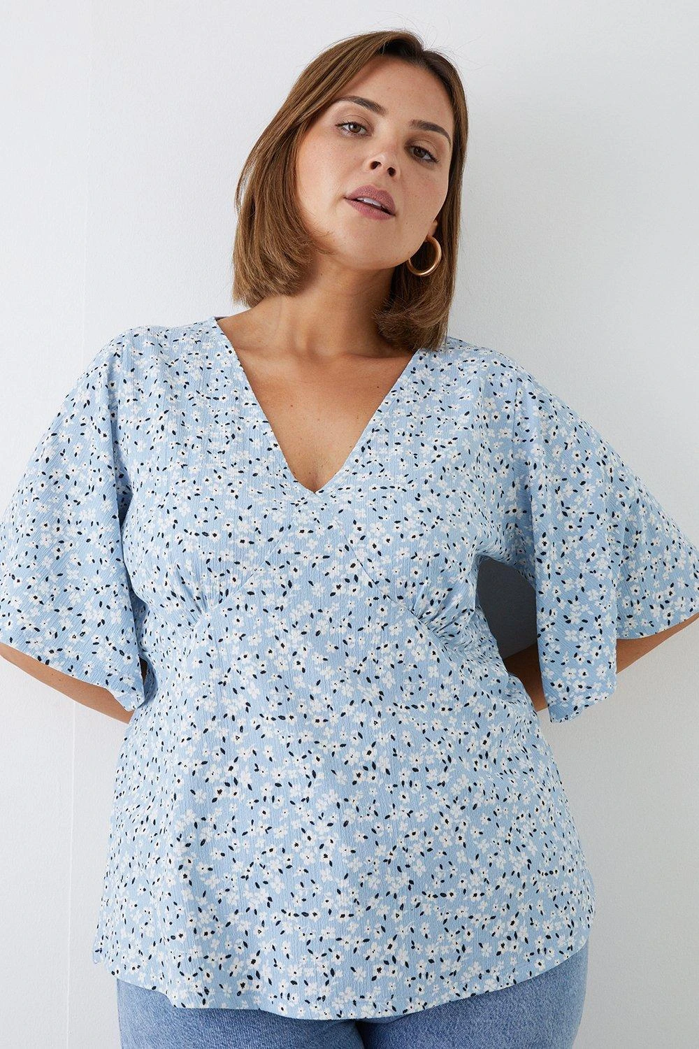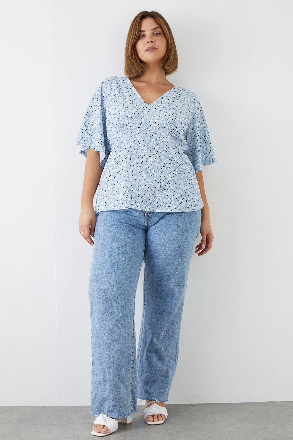 Dorothy Perkins Curve Blue Ditsy Angel Sleeve Blouse