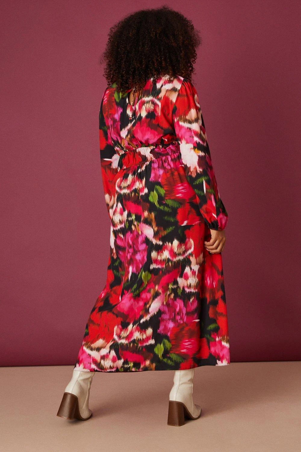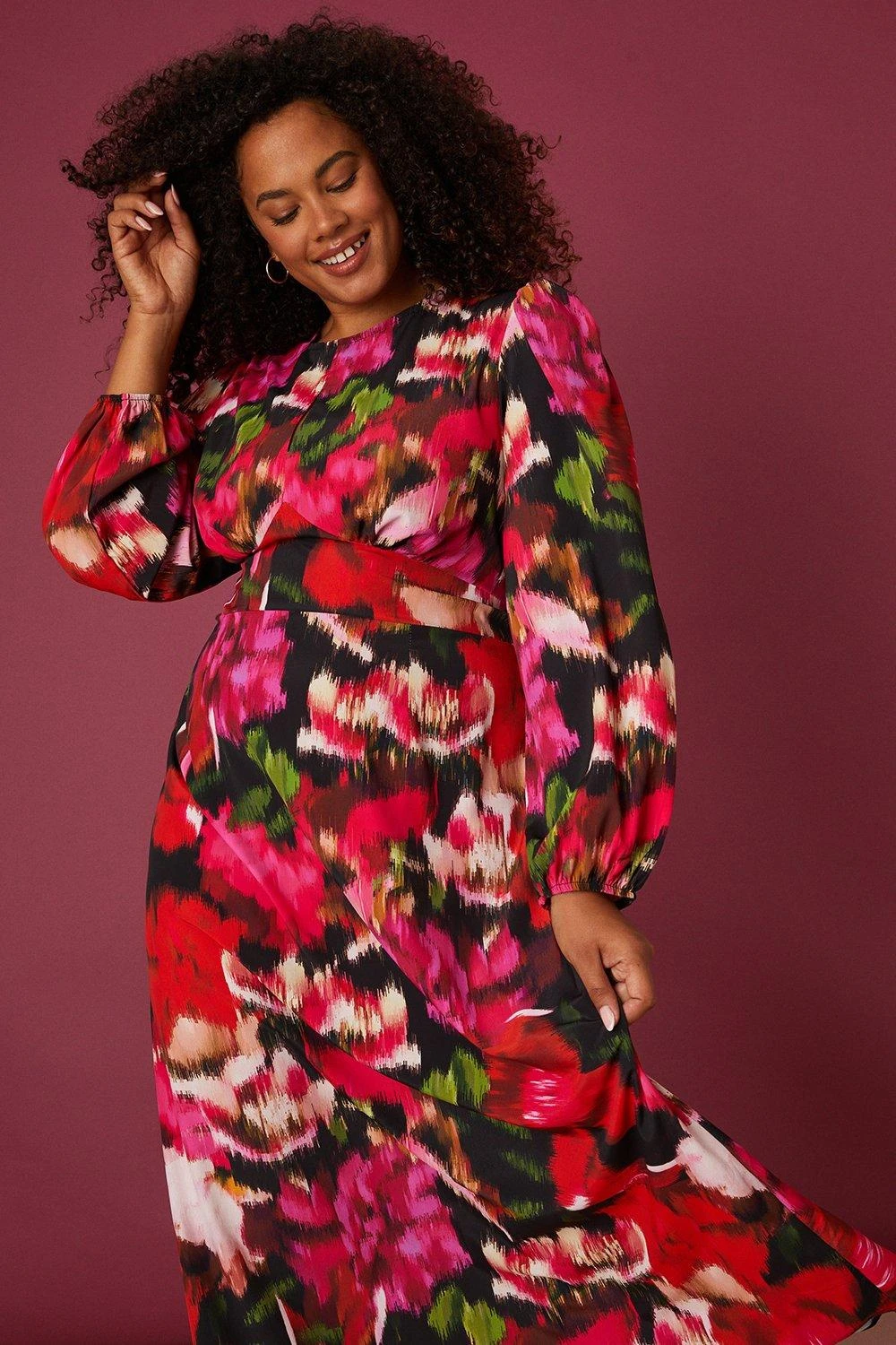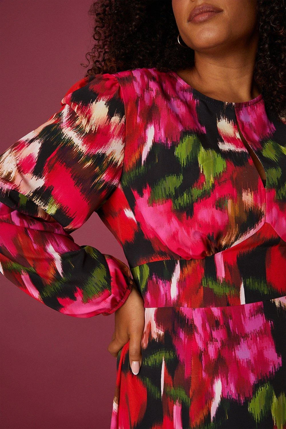 Dorothy Perkins Curve Blurred Floral High Neck Key Hole Detail Midi Dress