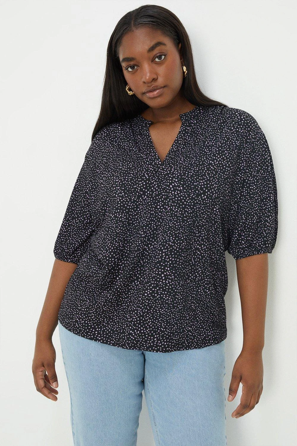 Dorothy Perkins Curve Mono Spot Short Sleeve Overhead Blouse