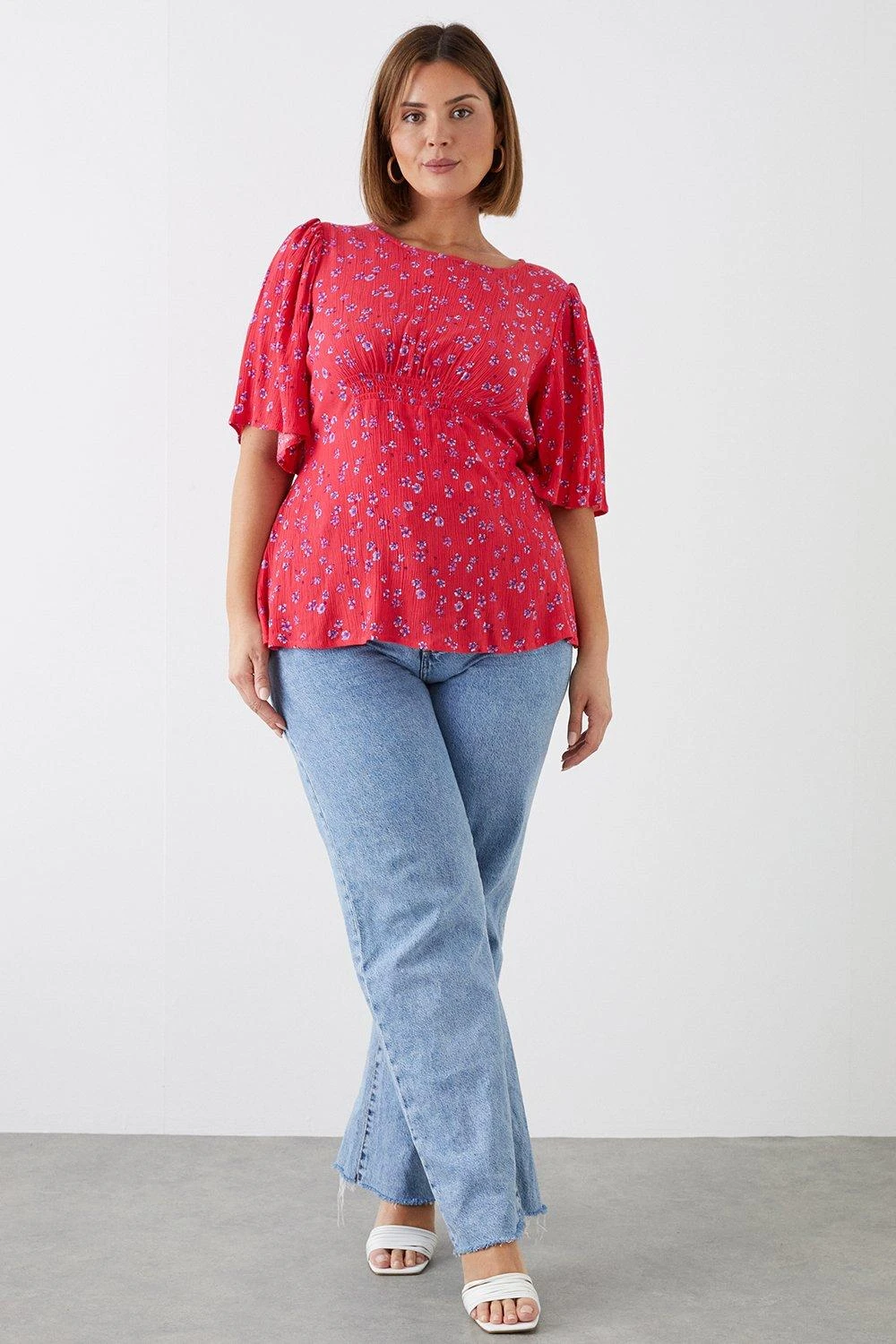 Dorothy Perkins Curve Red Floral Crinkle Angel Sleeve Blouse