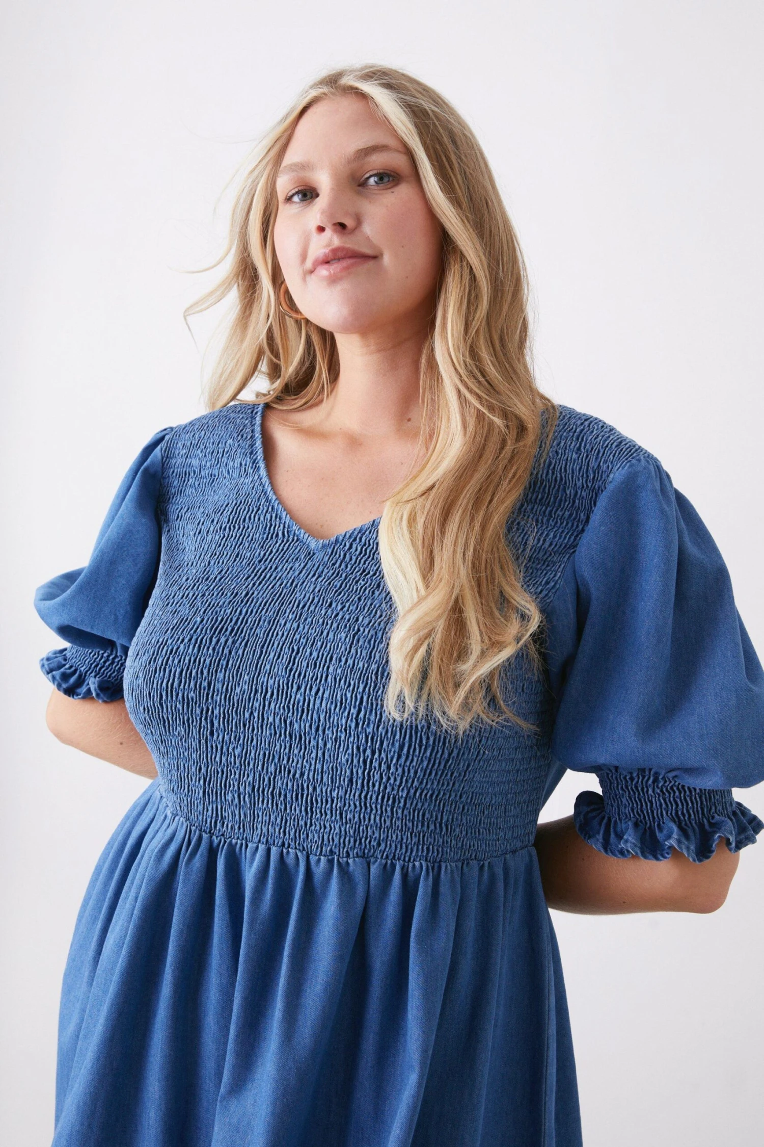 You’ve got the plans, we’ve got the dresses. From midi dresses to maxi dresses, bridesmaid dresses and everything in between, we’ve got you covered for every event in the social calendar. Whether you’re after occasionwear for a special event or updating your work attire with a simple shirt dress, you’ll find a range of amazing styles and silhouettes at DP. Style: Curve V Neck Denim Shirred Midi Dress. Ideal for: Daywear. Design: Shirred. Model wears size UK 18 and is 5′ 9″ tall. Make-up & Fragrance: Primer (Yves Saint Laurent, Touche Eclat Blur Primer 30ml), Foundation (Estée Lauder, Double Wear Stay in Place Foundation SPF10), Bronzer (Benefit, Hoola Matte Powder Bronzer), Blusher (Benefit, Wanderful World Blushes Starlaa Rosy Bronze Powder Blusher), Setting Spray (Urban Decay, All Nighter Setting Spray 118ml), Fragrance (Ghost The Fragrance Eau De Toilette).