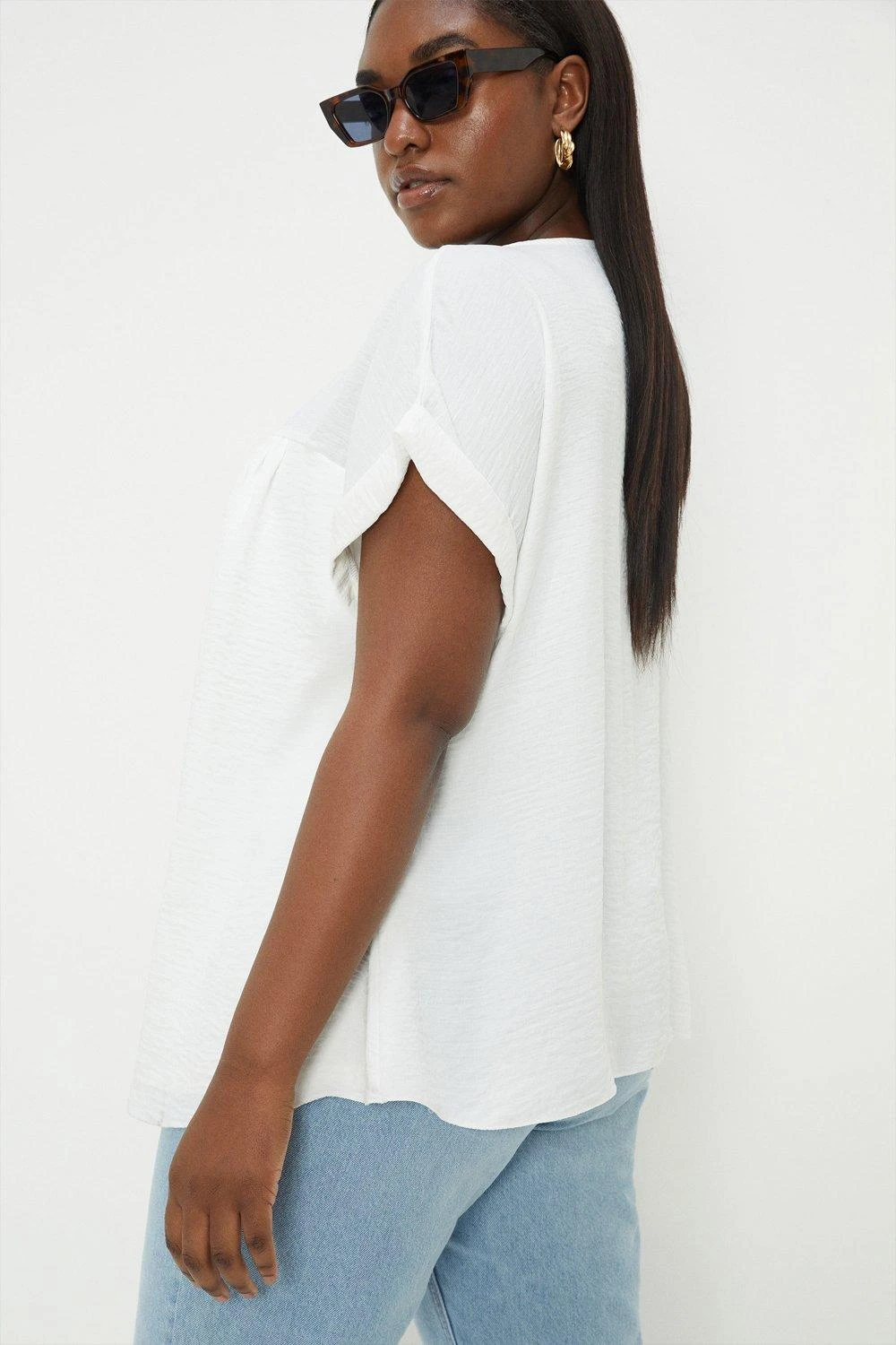 Cami or blouse? Shirt or bodysuit? Whatever you’re after, our women’s tops have you covered for every event in the social calendar. From casual fits to elevated styles for special occasions, we make it easy to nail the ‘jeans and a nice top’ look. Think puff sleeves, pretty prints, wrap silhouettes and so much more. Style: Curve White Slub Over Sized Roll Sleeve Tee. Ideal for: Daywear. Made in the UK. Make-up & Fragrance: Primer (Estée Lauder, Futurist Aqua Brilliance Watery Glow Primer), Foundation (Estée Lauder, Futurist Hydra Rescue Moisturizing Foundation SPF45), Bronzer (Benefit Hoola Matte Powder Bronzer), Mascara (Benefit, They’Re Real Lengthening Mascara Jet Black 8.5g), Setting Spray (Urban Decay, All Nighter Setting Spray 118ml), Fragrance (Jimmy Choo Eau De Parfum Signature).