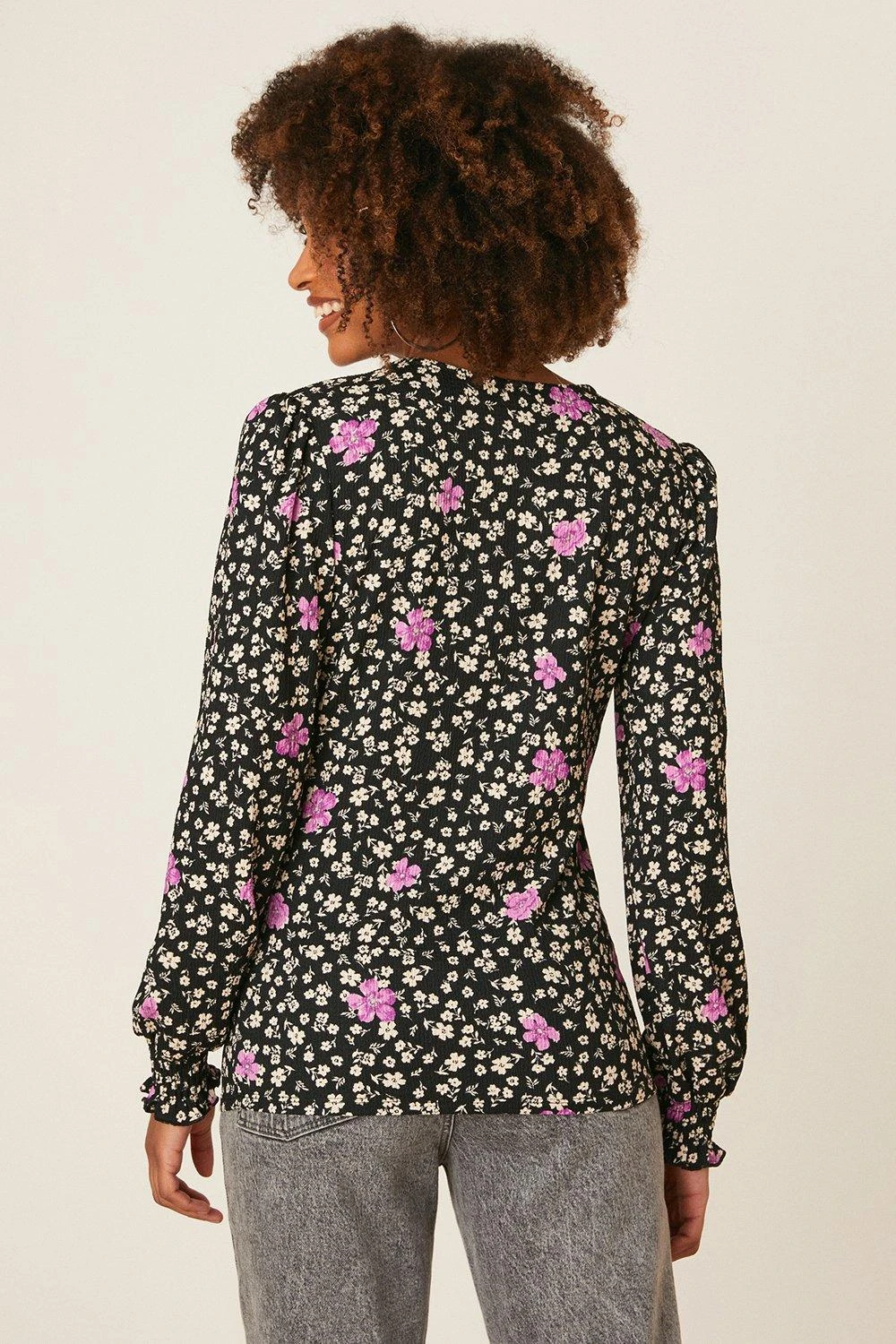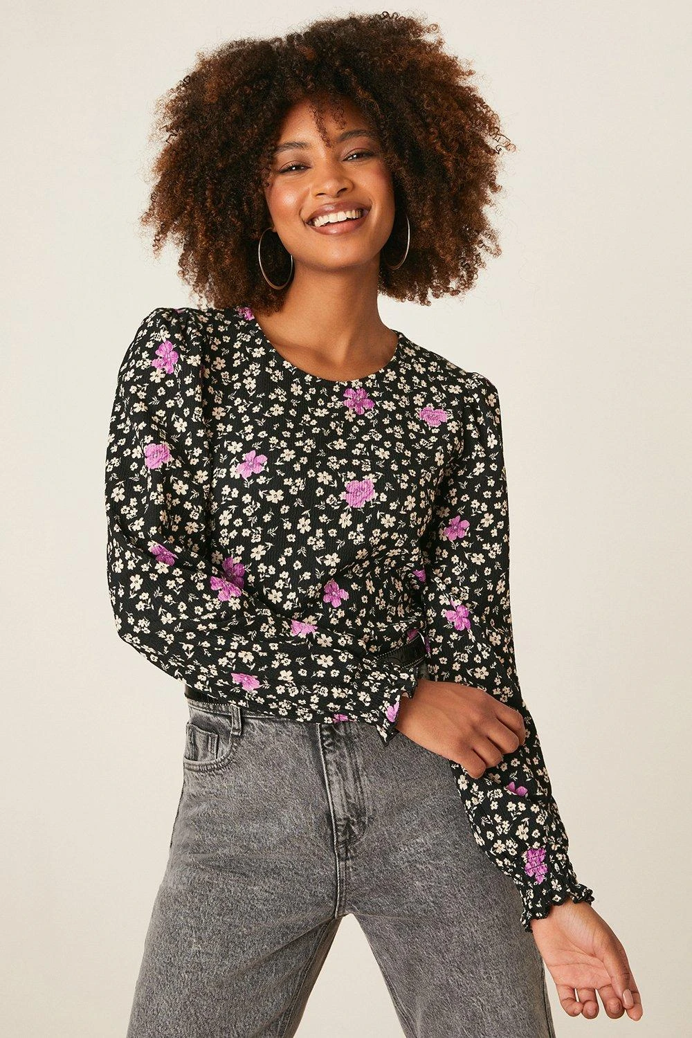 Dorothy Perkins Ditsy Shirred Cuff Long Sleeve Top
