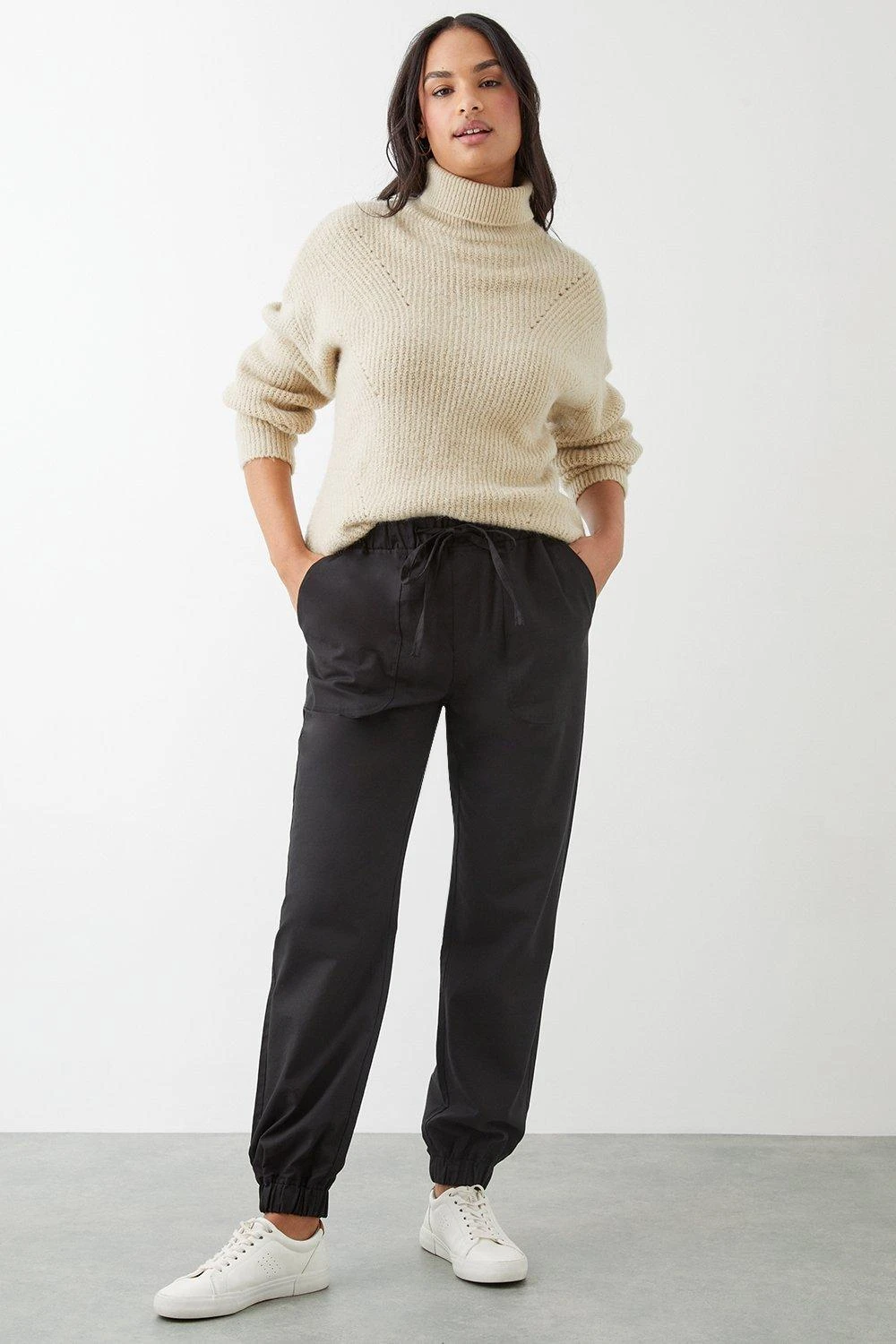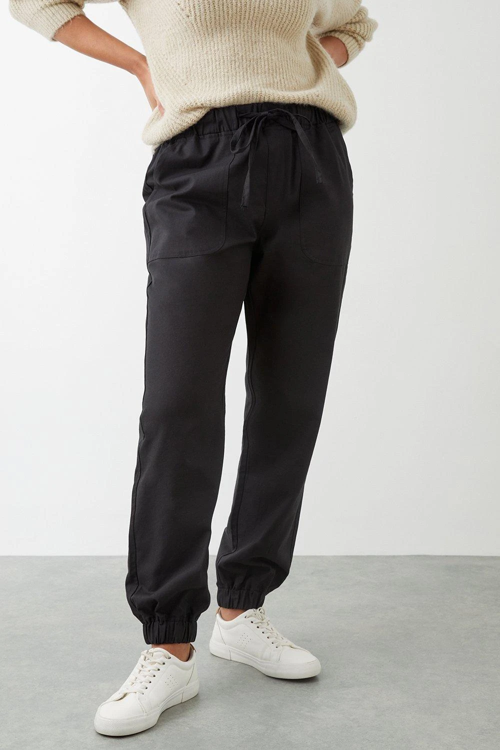 Wide leg or tapered? Tailored or loungewear? Discover our collection of women’s trousers and find the perfect fit for you. With everything from cargo, cropped, flared and cuffed, we’ve got trousers to suit every style. Whether you’re going for brunch or heading out to drinks, we’ll help you create a look you love. Style: Elastic Cuff Jogger. Ideal for: Daywear. Fit: Regular. Design: Cuffed. Model wears size UK 10 and is 5′ 9″ tall. Make-up & Fragrance: Primer (Yves Saint Laurent, Touche Eclat Blur Primer 30ml), Foundation (Estée Lauder, Double Wear Stay in Place Foundation SPF10), Bronzer (Benefit, Hoola Matte Powder Bronzer), Blusher (Benefit, Wanderful World Blushes Starlaa Rosy Bronze Powder Blusher), Setting Spray (Urban Decay, All Nighter Setting Spray 118ml), Fragrance (Ghost The Fragrance Eau De Toilette).
