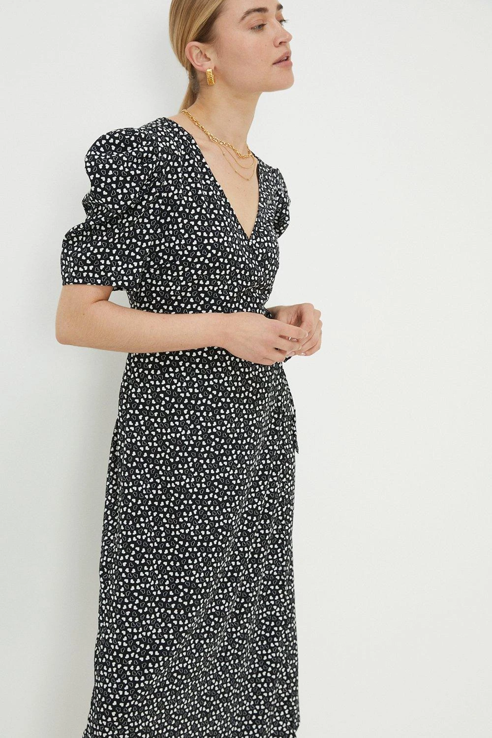 Dorothy Perkins Heart Print Puff Sleeve Wrap Midi Dress