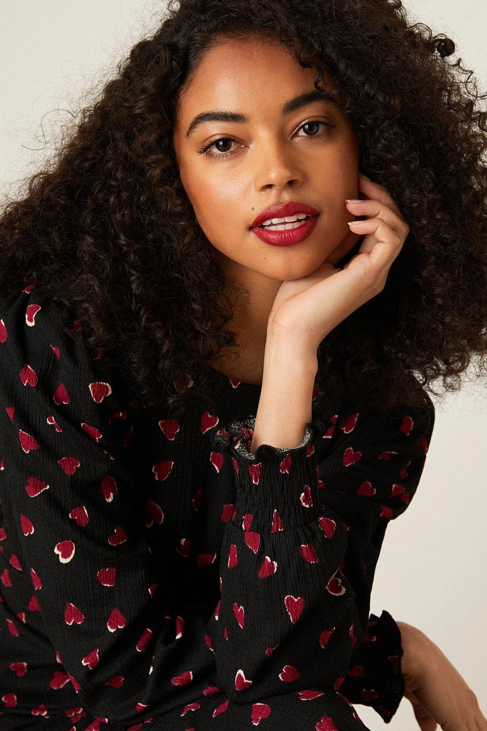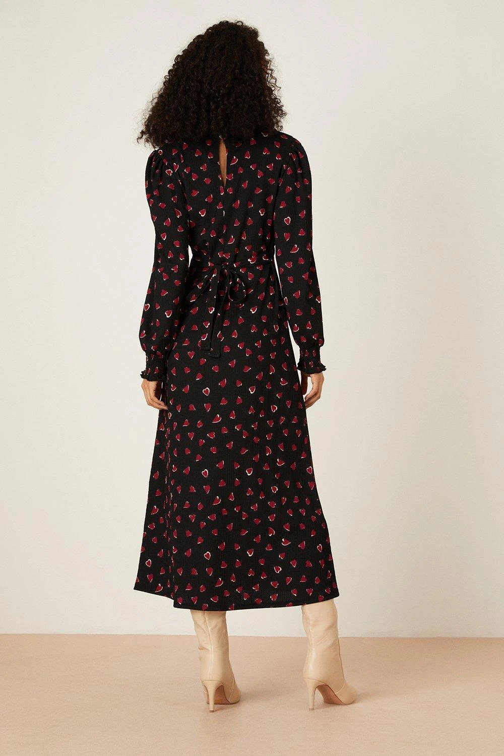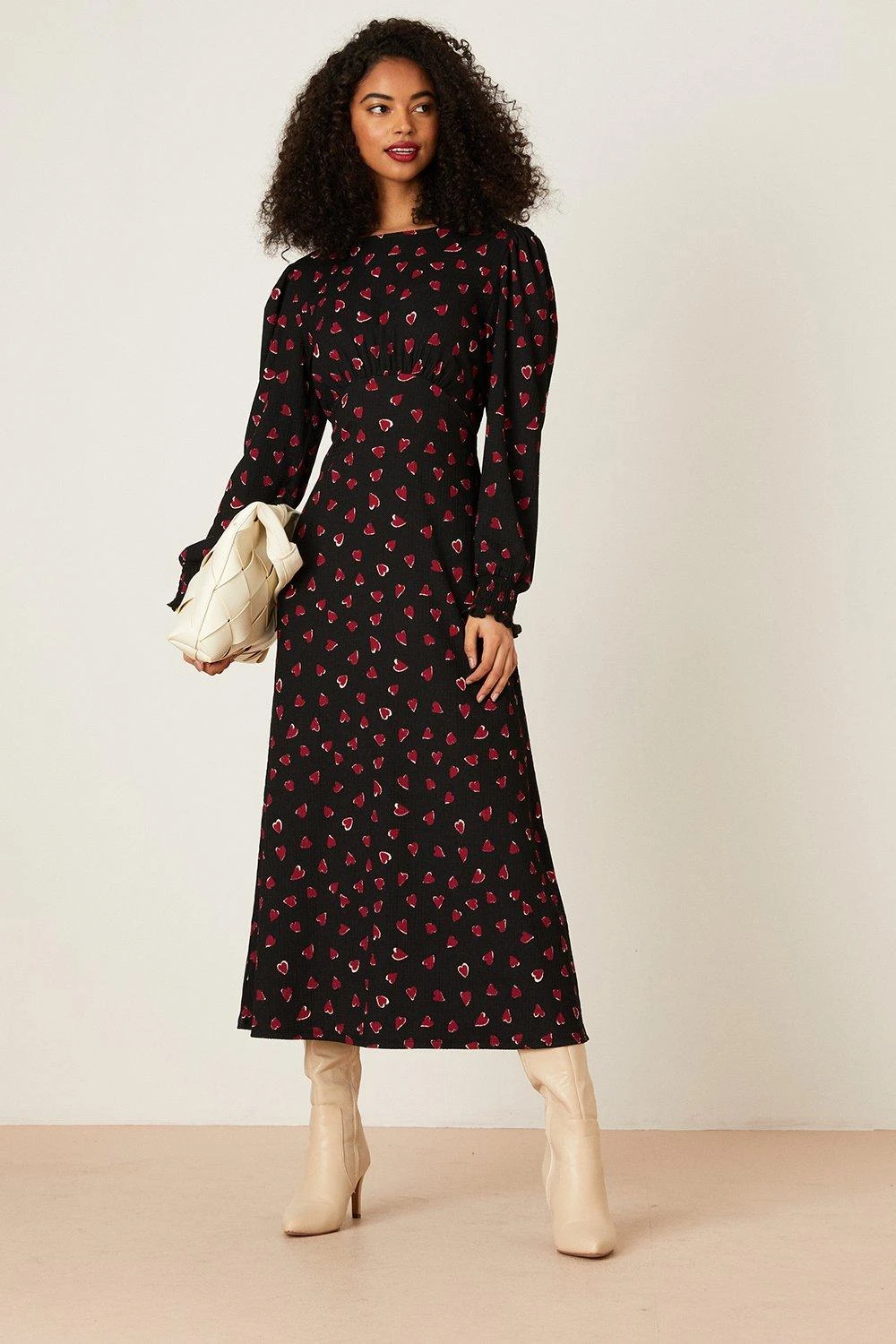 Dorothy Perkins Heart Print Shirred Cuff Midi Dress