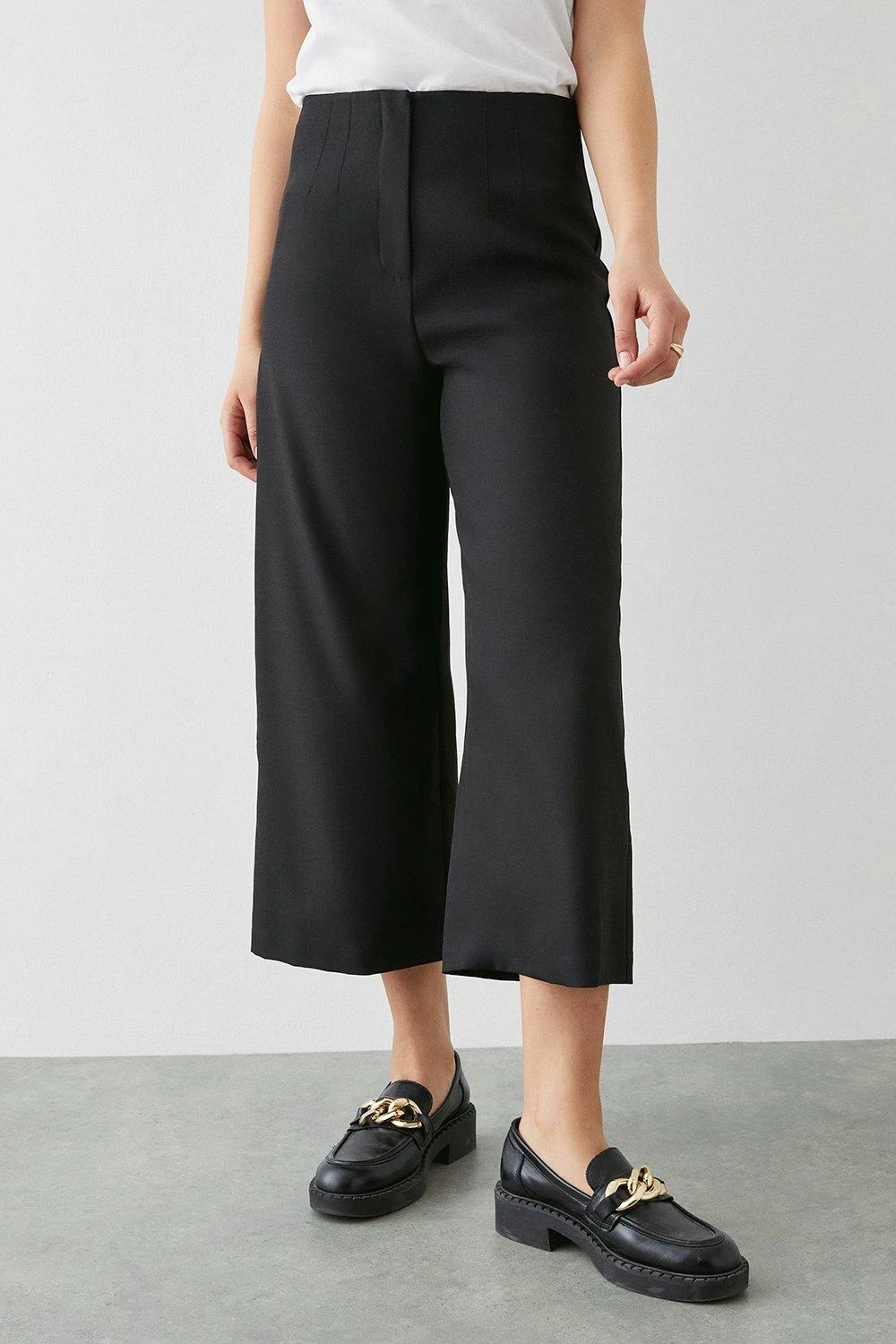 Wide leg or tapered? Tailored or loungewear? Discover our collection of women’s trousers and find the perfect fit for you. With everything from cargo, cropped, flared and cuffed, we’ve got trousers to suit every style. Whether you’re going for brunch or heading out to drinks, we’ll help you create a look you love. Style: High Waist Culotte Trousers. Ideal for: Casual. Fit: Regular. Model wears size UK 10 and is 5′ 9″ tall. Make-up & Fragrance: Primer (Estée Lauder, Futurist Aqua Brilliance Watery Glow Primer), Foundation (Estée Lauder, Futurist Hydra Rescue Moisturizing Foundation SPF45), Bronzer (Benefit Hoola Matte Powder Bronzer), Mascara (Benefit, They’Re Real Lengthening Mascara Jet Black 8.5g), Setting Spray (Urban Decay, All Nighter Setting Spray 118ml), Fragrance (Jimmy Choo Eau De Parfum Signature).