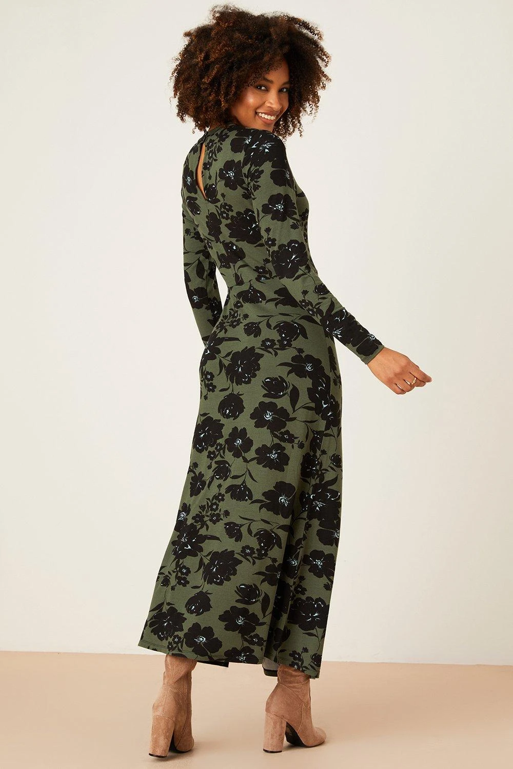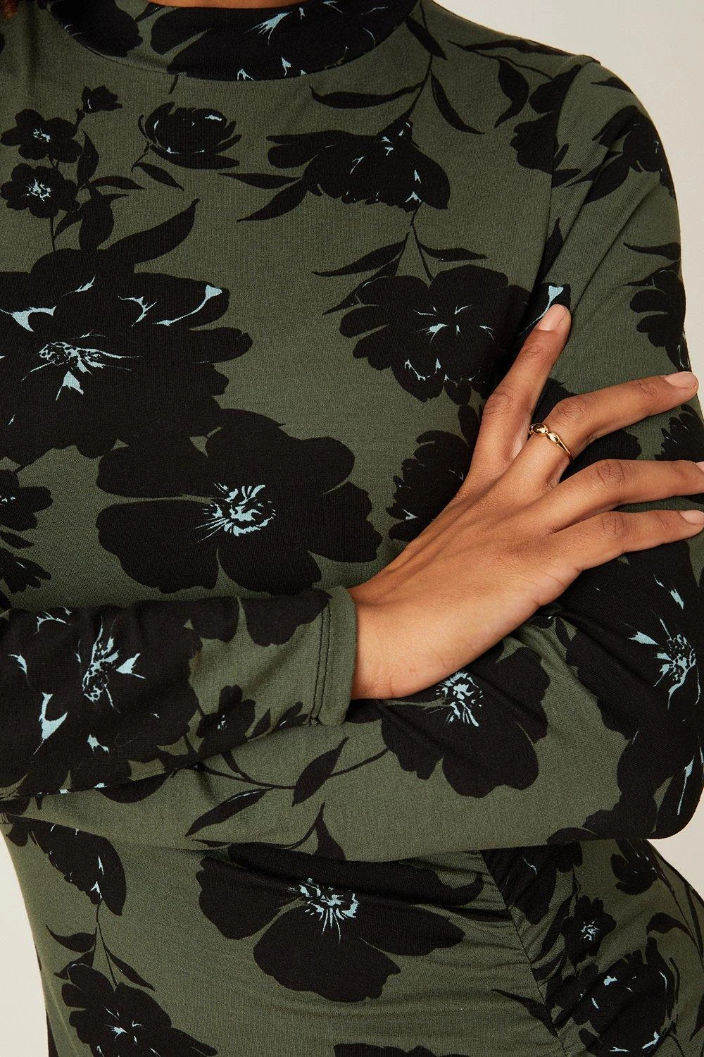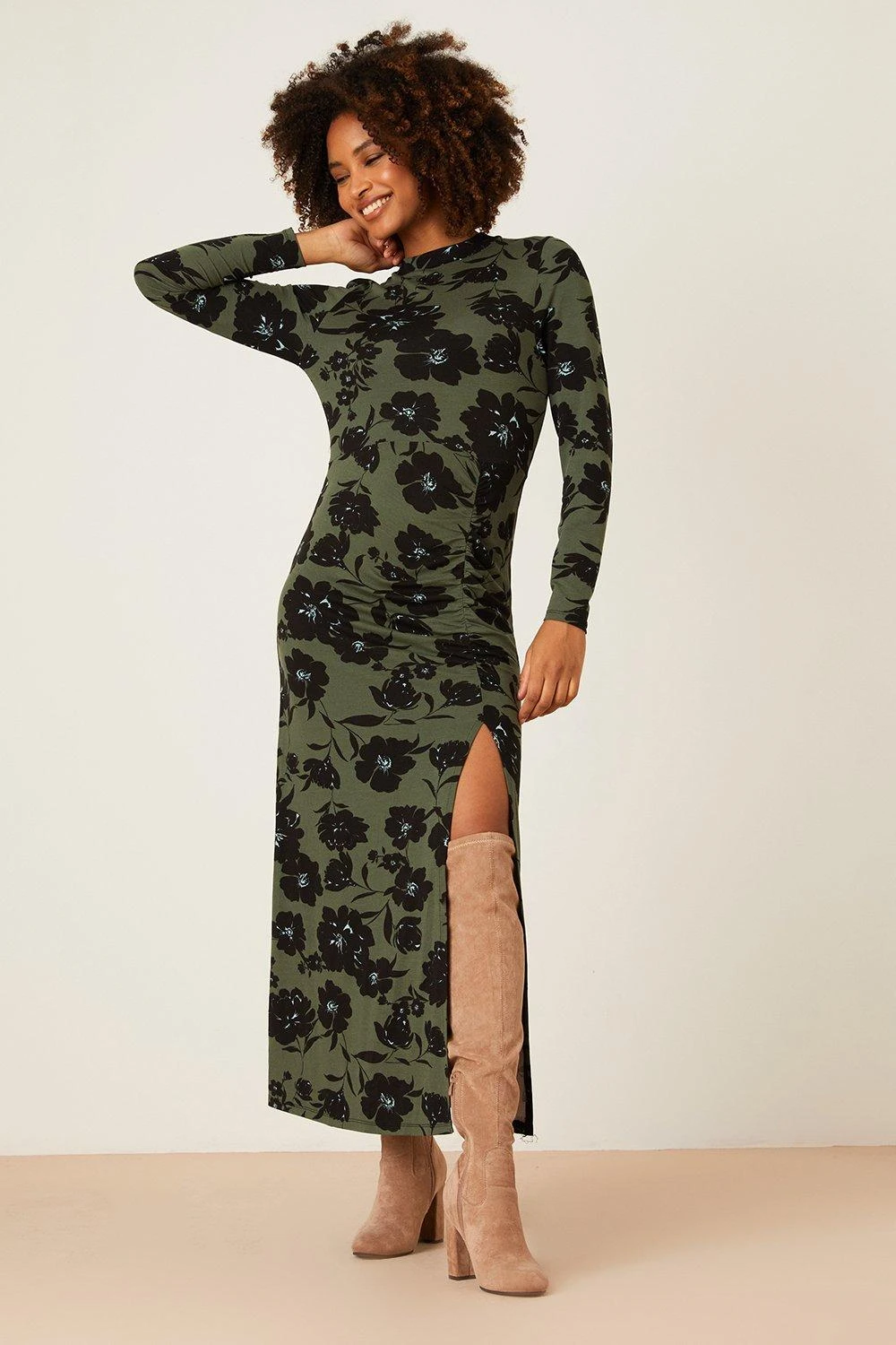 Dorothy Perkins Khaki Floral Ruched Split Midi Dress