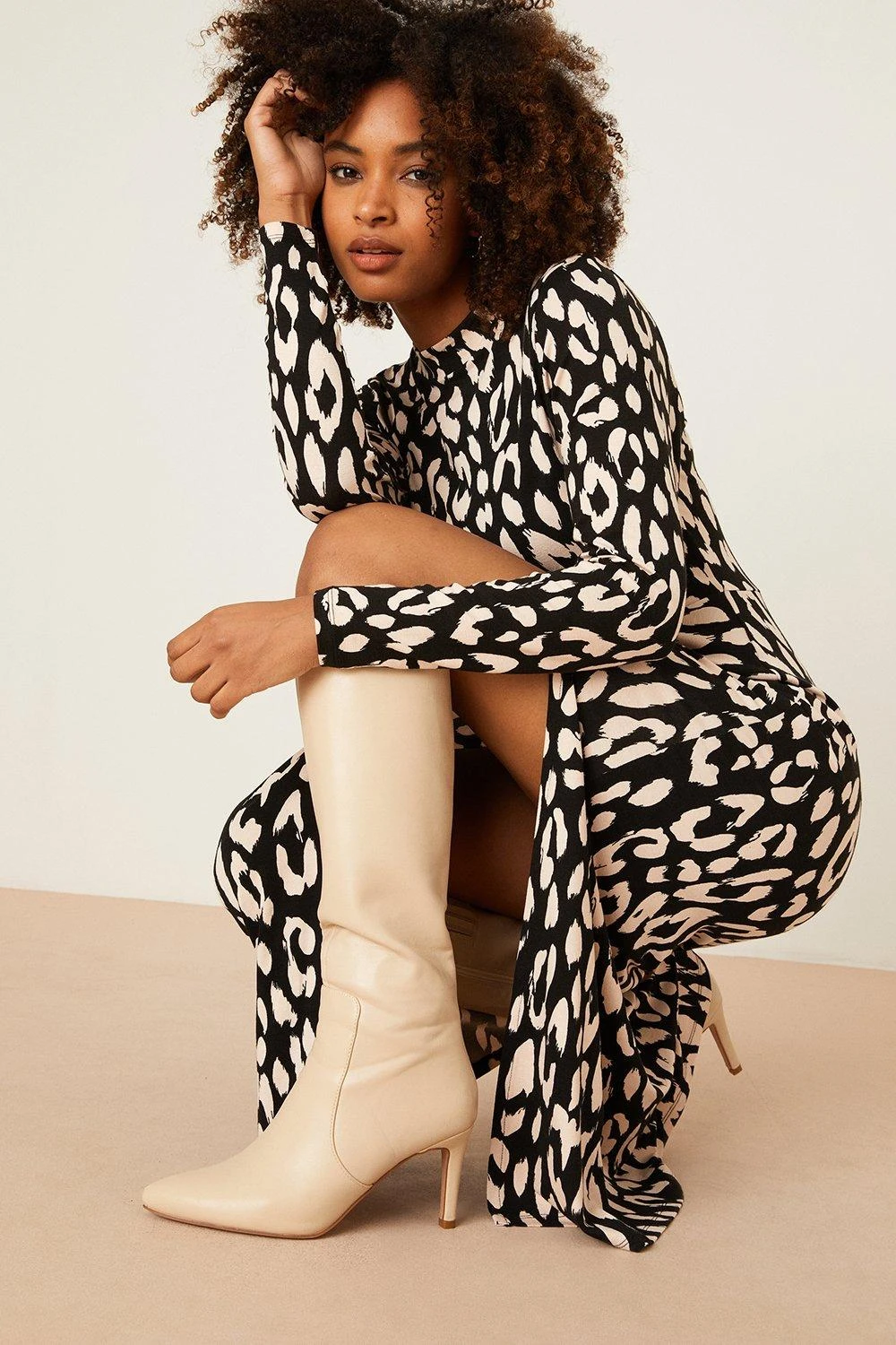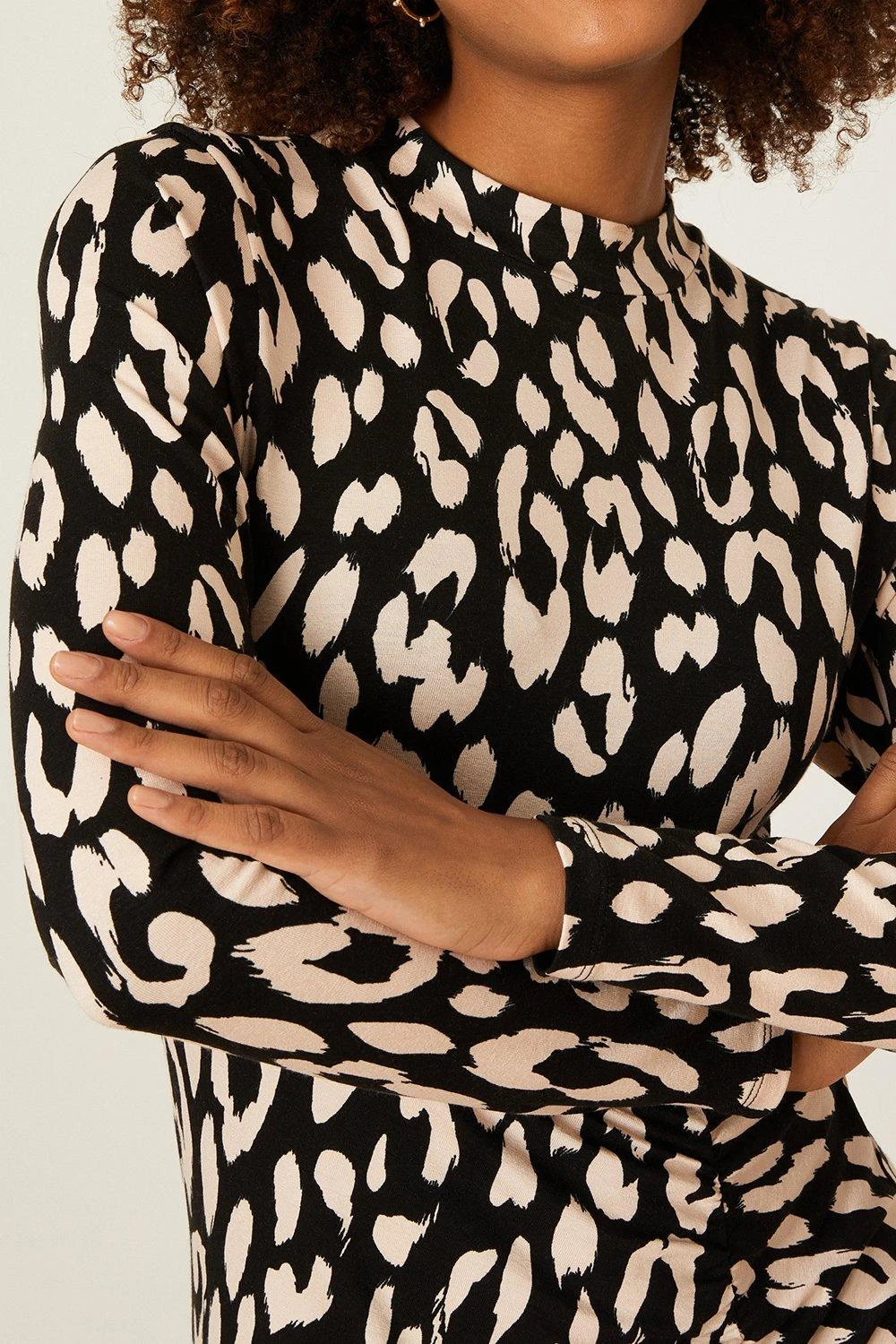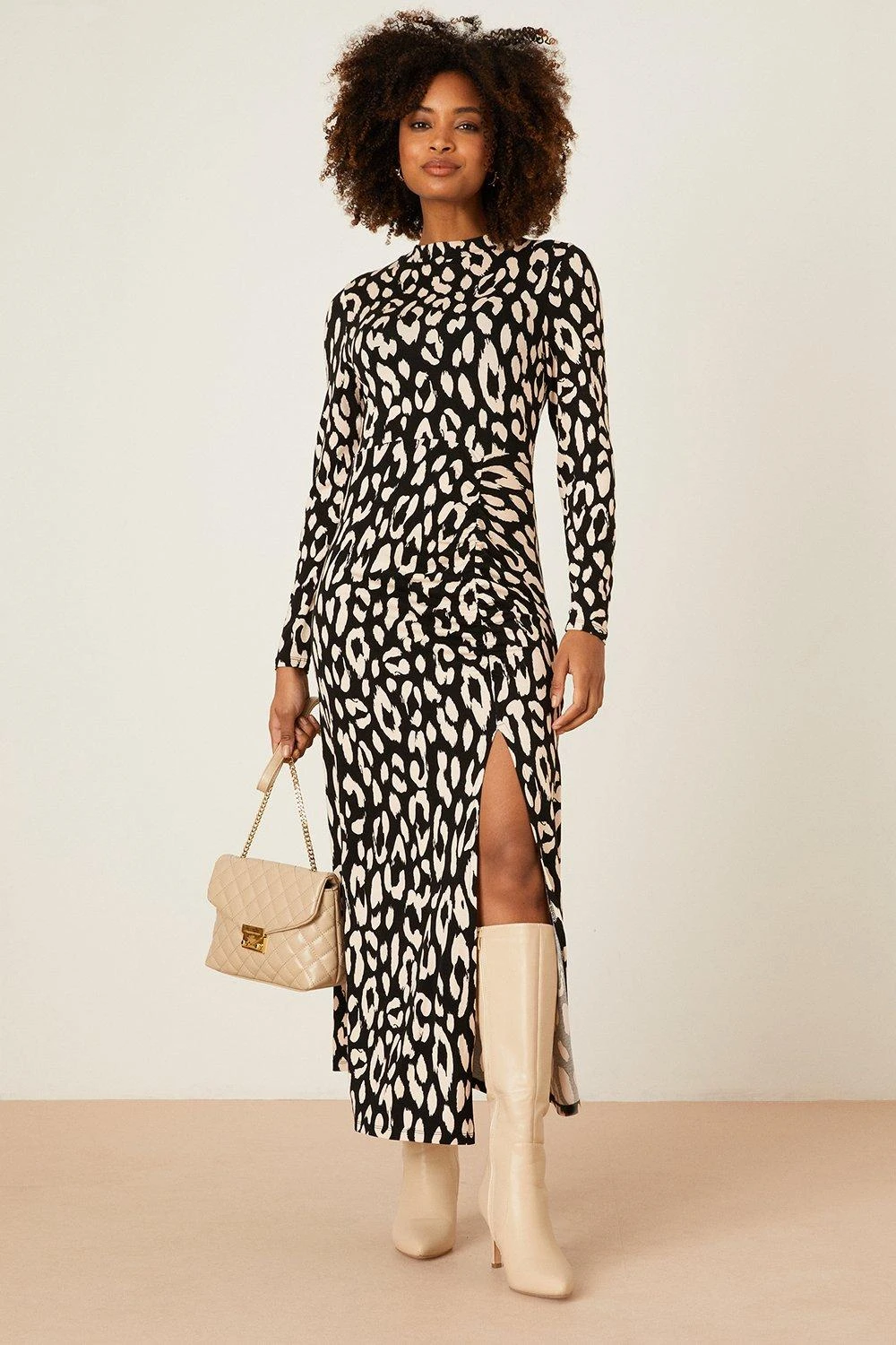 Dorothy Perkins Mono Animal Ruched Split Midi Dress