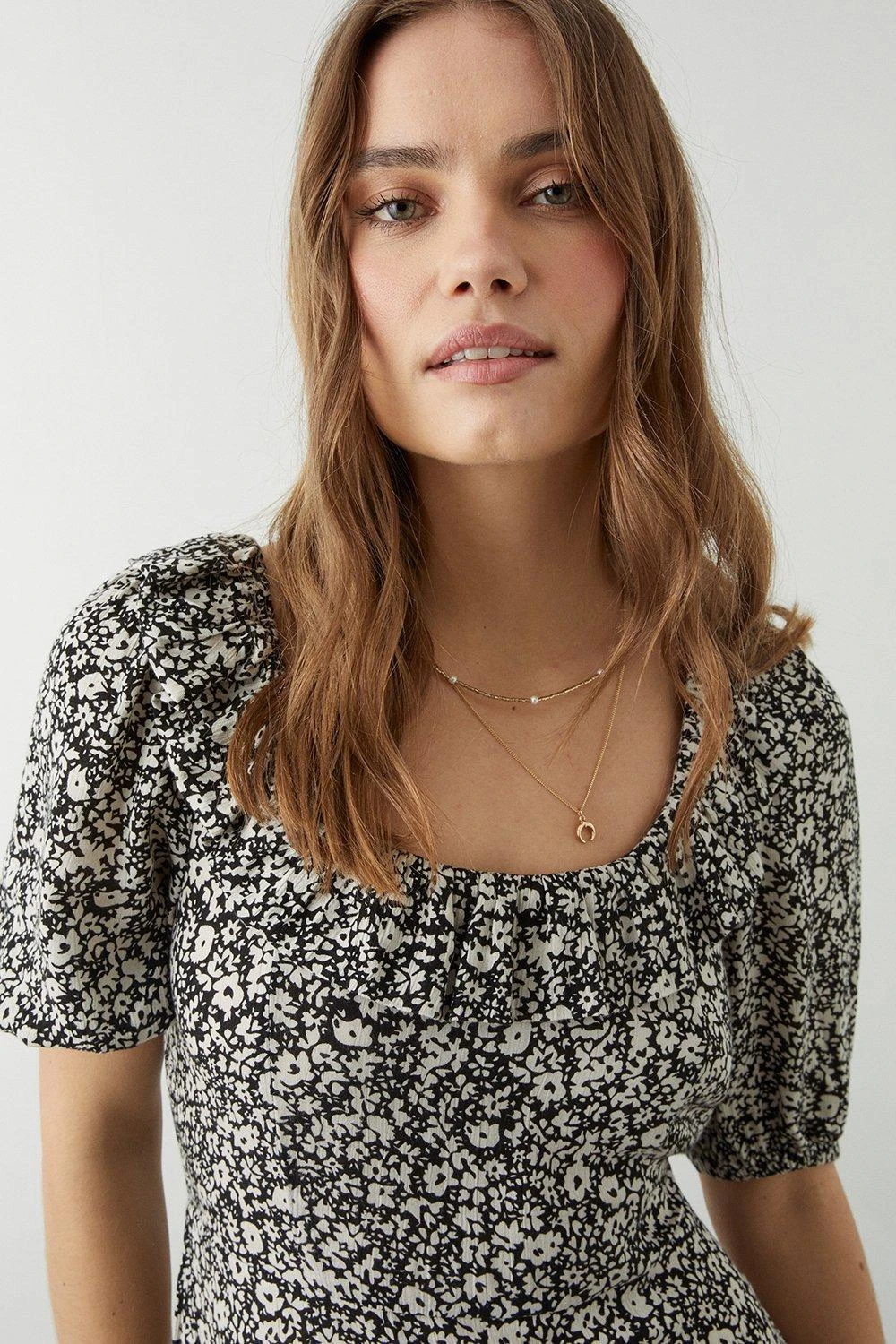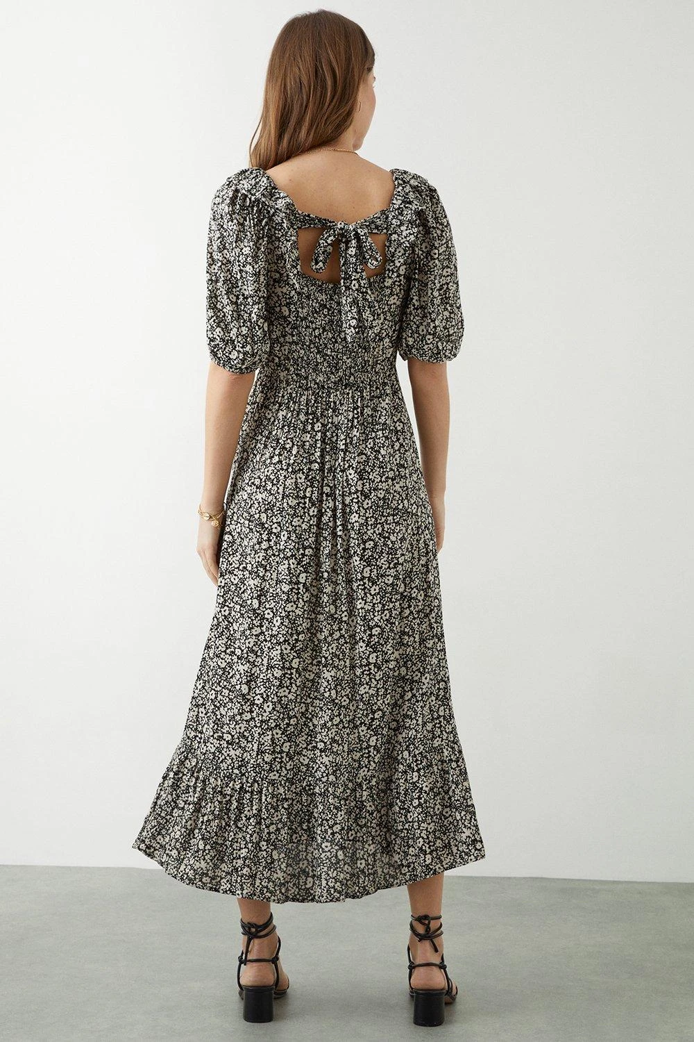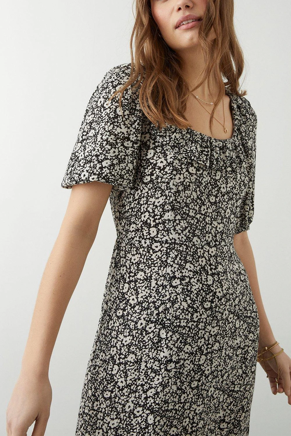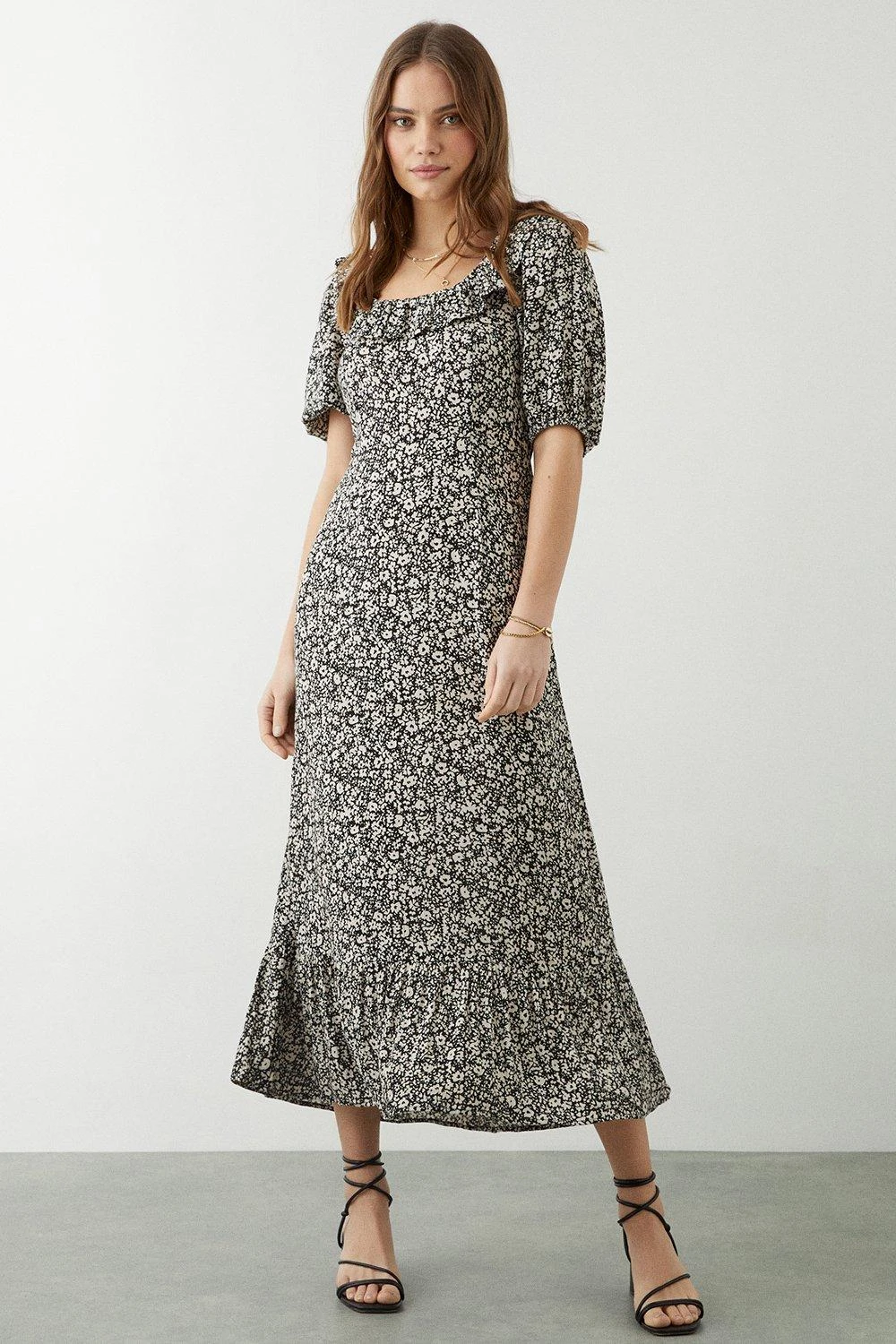 Dorothy Perkins Mono Ditsy Ruffle Front Midi Dress