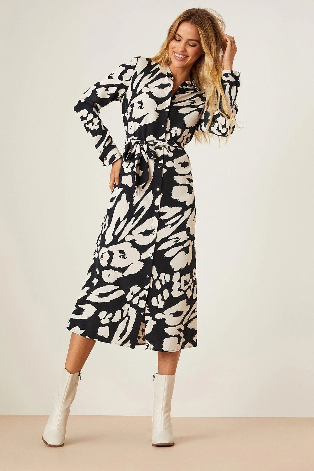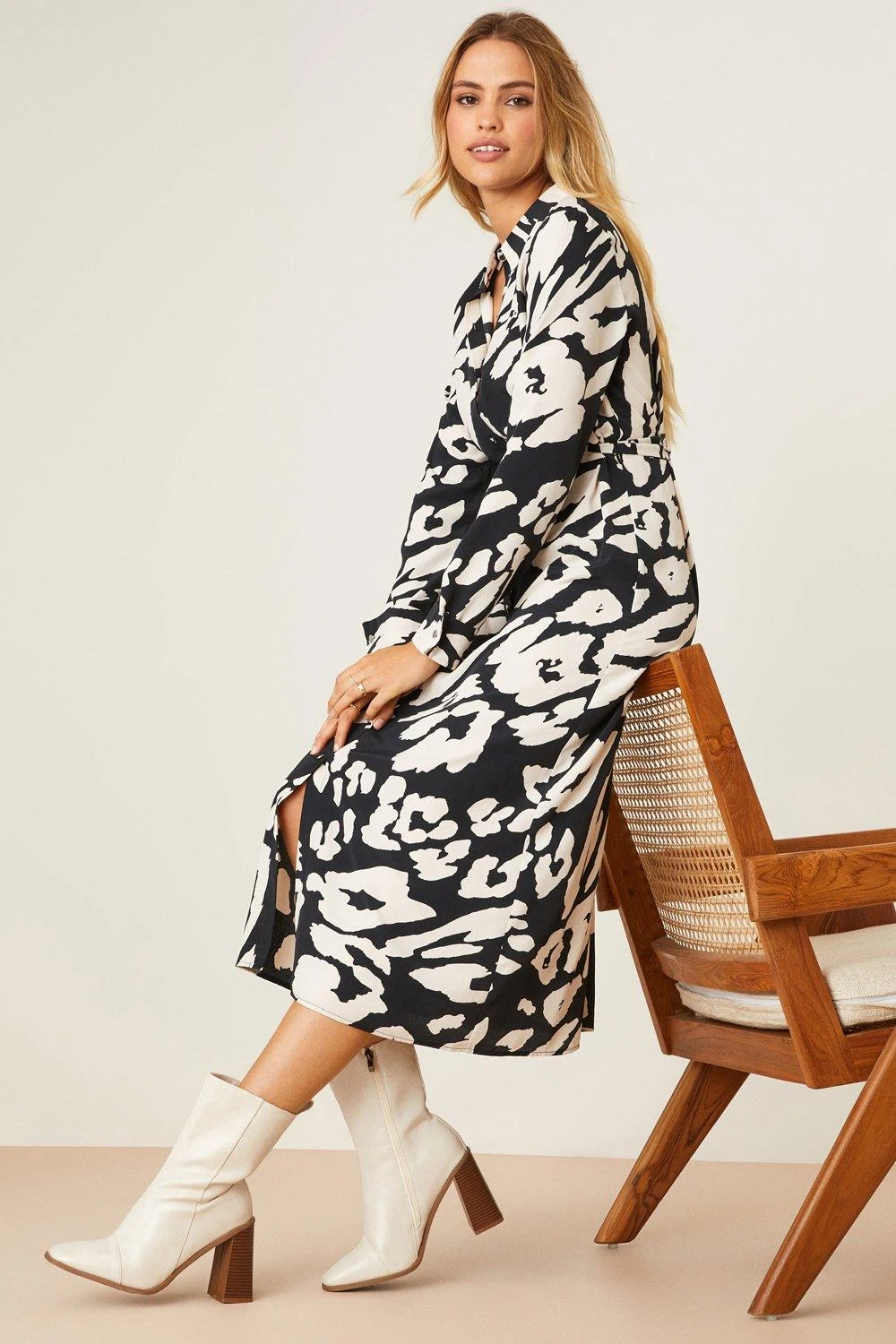 Dorothy Perkins Mono Print Midi Shirt Dress