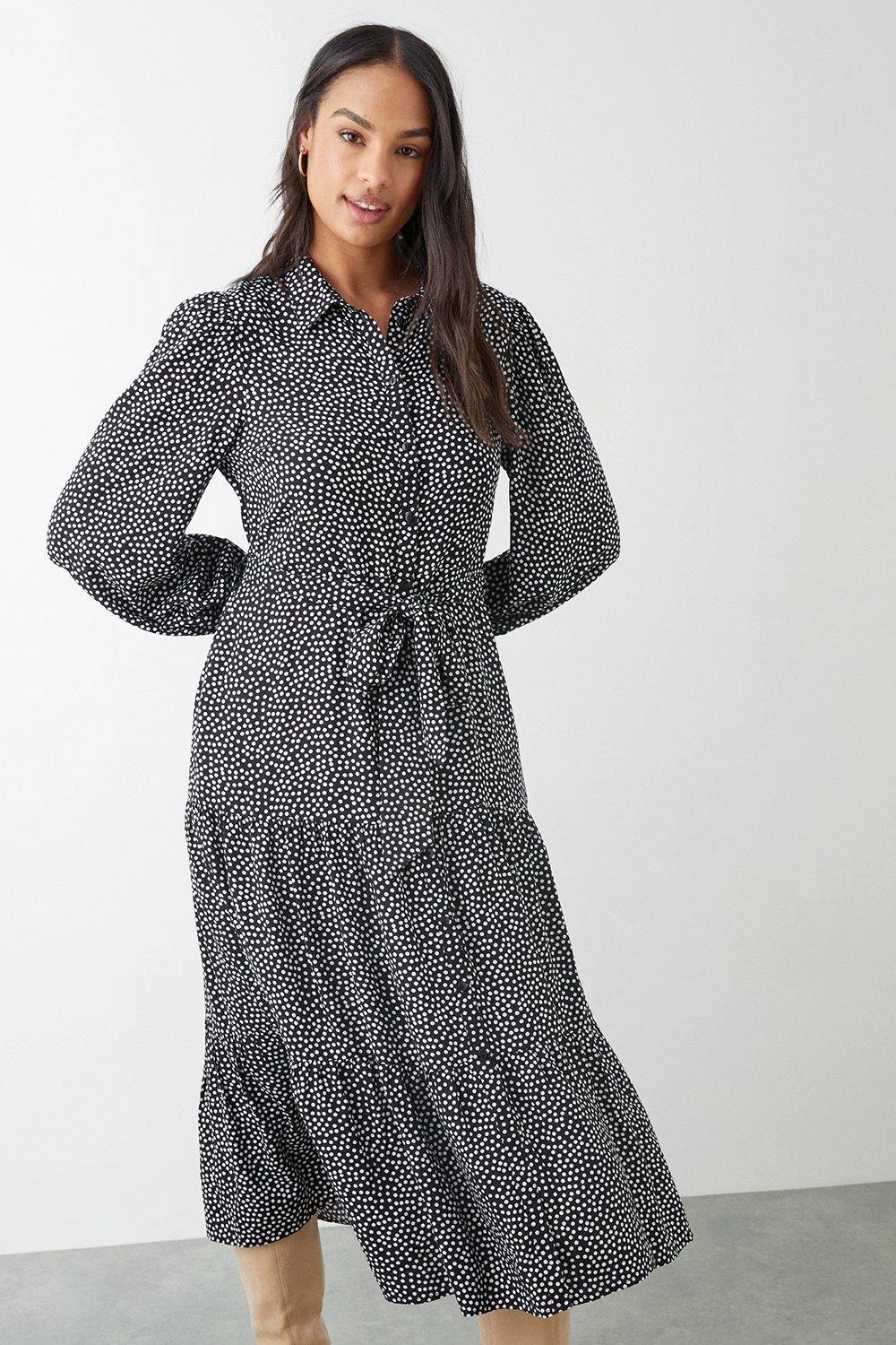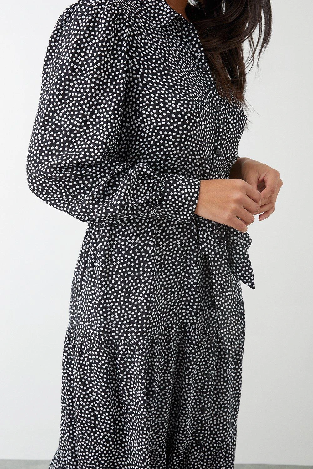 Dorothy Perkins Mono Spot Belted Midi Shirt Dress