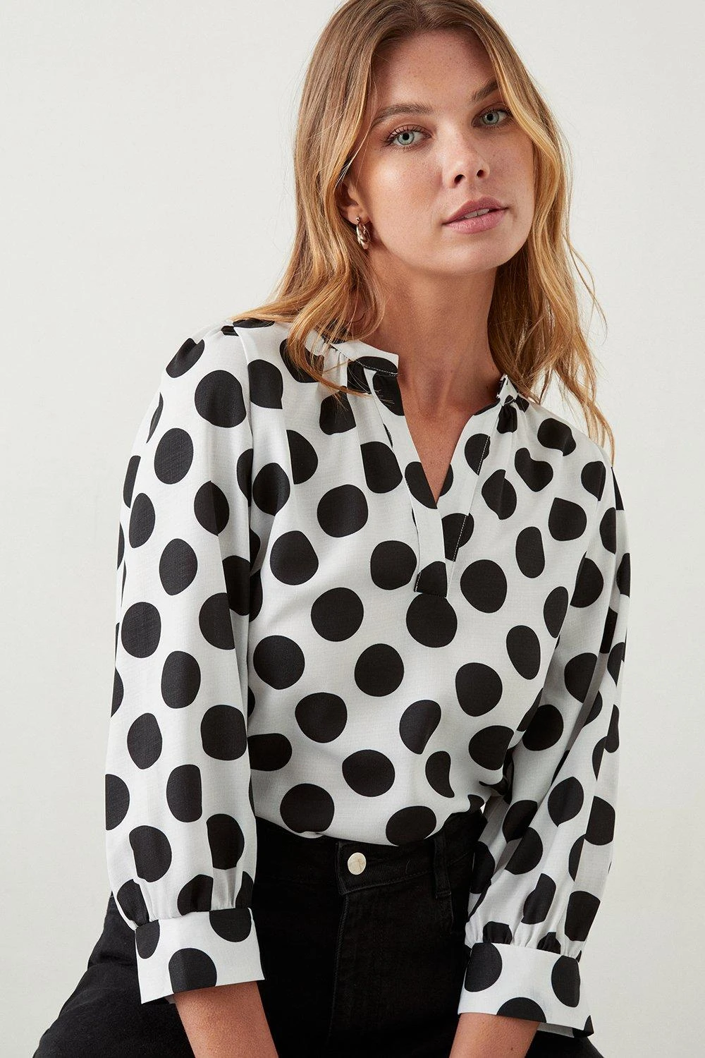 Update your wardrobe essentials with our collection of women’s shirts and blouses. From bright poplin shirts and floral prints to frilled statement styles, we’ve got everything you need to complete your look. Button up in an oversized fit or go super feminine in a cute lace blouse; wherever you’re going, we’ve got the shirt for you.Style: Spot Overhead Shirt Length: Approx. 64cm Fit: Relaxed Ideal for: DaywearDesign: All Over Print Make-up & Fragrance: Primer (Estée Lauder, Futurist Aqua Brilliance Watery Glow Primer), Foundation (Estée Lauder, Futurist Hydra Rescue Moisturizing Foundation SPF45), Bronzer (Benefit Hoola Matte Powder Bronzer), Mascara (Benefit, They’Re Real Lengthening Mascara Jet Black 8.5g), Setting Spray (Urban Decay, All Nighter Setting Spray 118ml), Fragrance (Jimmy Choo Eau De Parfum Signature).This garment is READY FOR THE FUTURE.Recycled fibres can be used for a number of materials including polyester, cotton and acrylic. They are a more sustainable alternative, as they take less energy, land and water to make than virgin fibres, and are often derived from products that would otherwise have gone to wasteFind out more about our sustainability guidelines and goals.