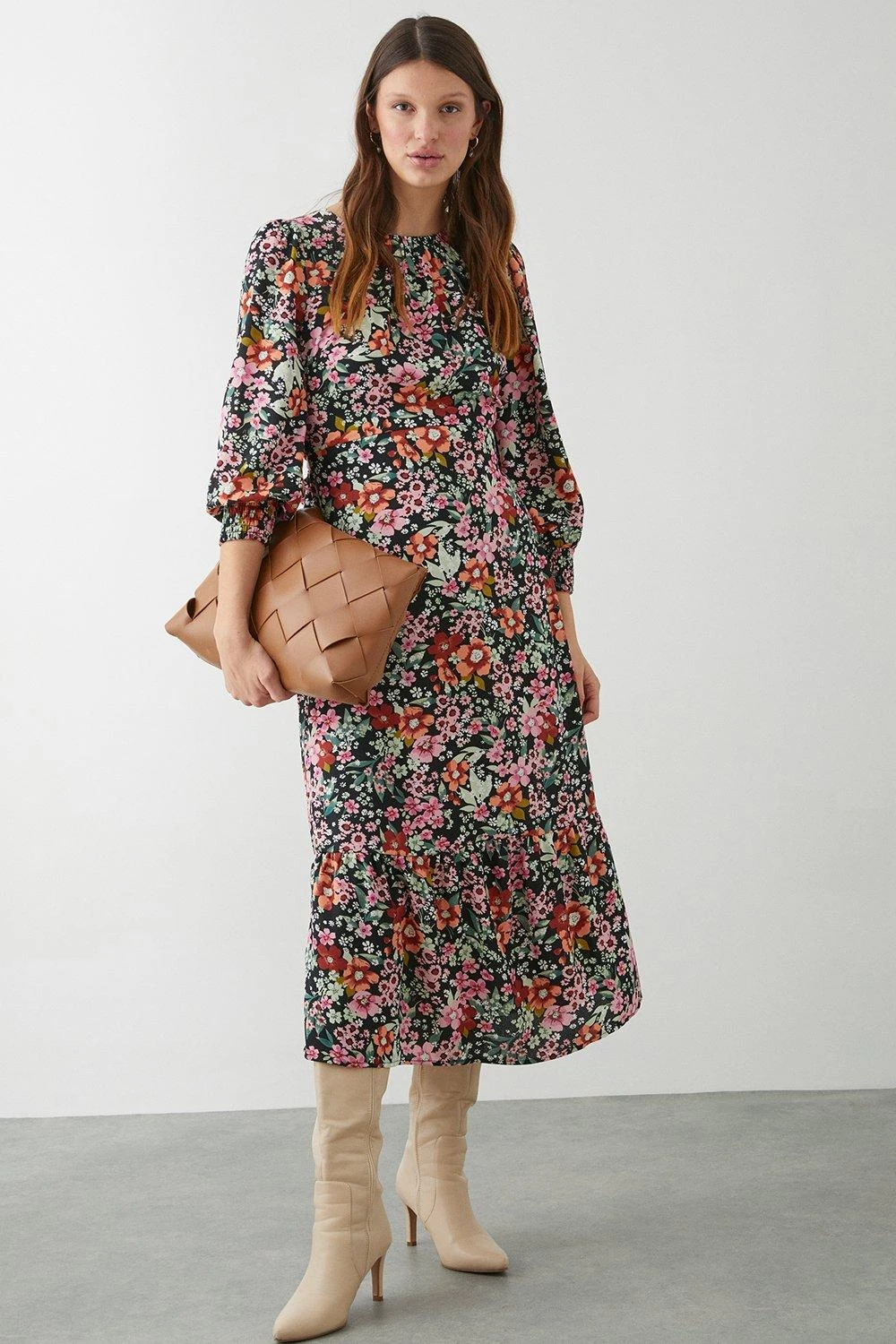 Dorothy Perkins Multi Floral Tie Back Midi Dress