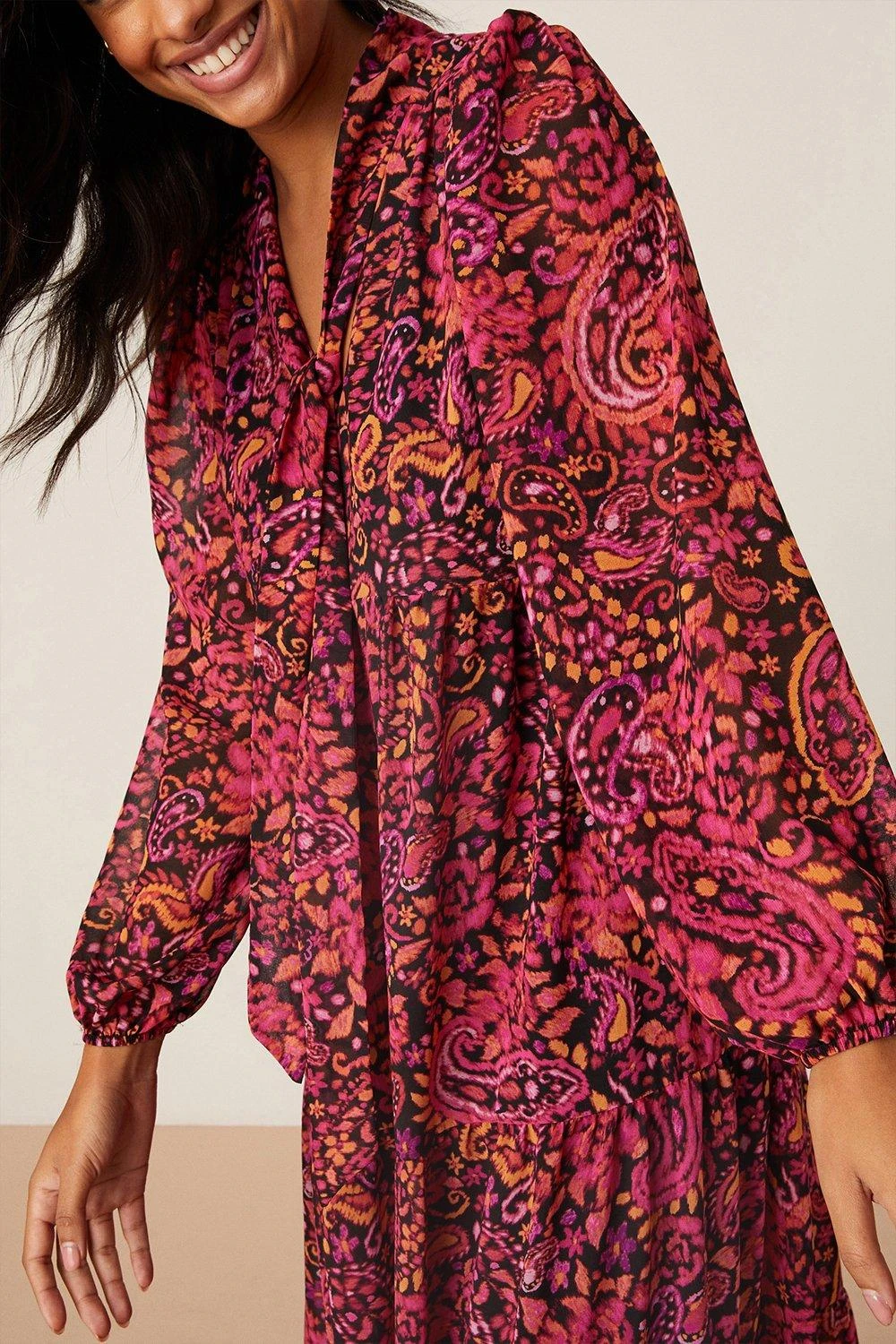 Dorothy Perkins Paisley Print Long Sleeve Chiffon Smock Midi Dress