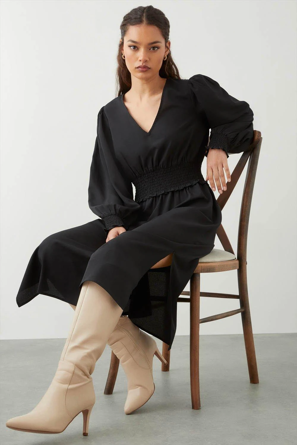 You’ve got the plans, we’ve got the dresses. From midi dresses to maxi dresses, bridesmaid dresses and everything in between, we’ve got you covered for every event in the social calendar. Whether you’re after occasionwear for a special event or updating your work attire with a simple shirt dress, you’ll find a range of amazing styles and silhouettes at DP. Style: Petite Black Shirred Waist Midi DressLength: Approx. 125cmFit: Fit And FlareIdeal for: DaywearDesign: Shirred