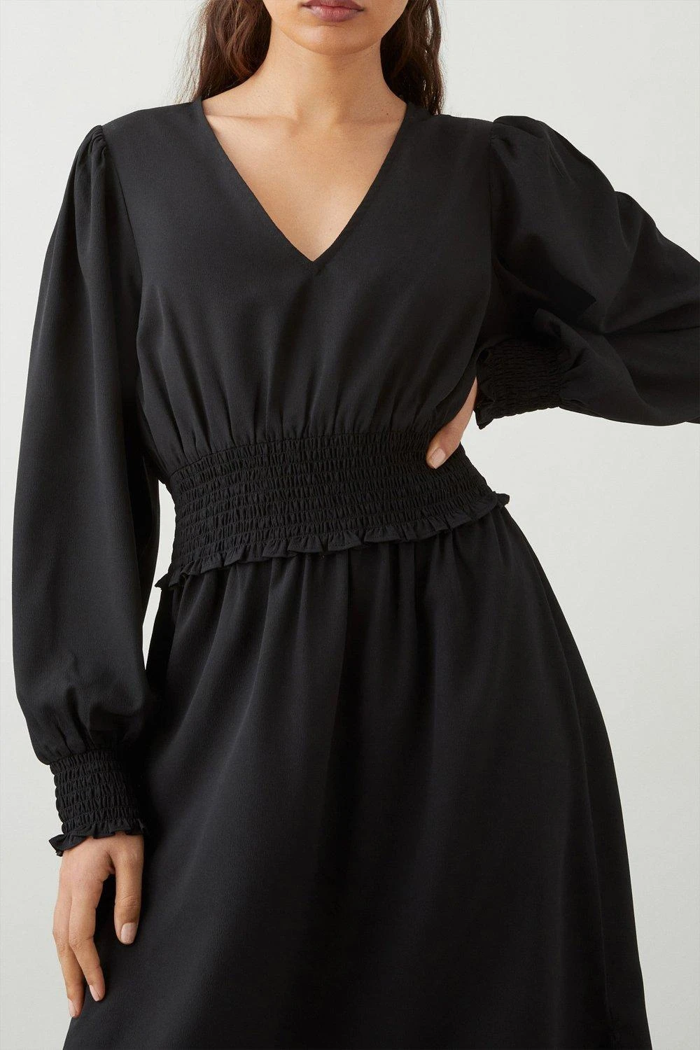 Dorothy Perkins Petite Black Shirred Waist Midi Dress