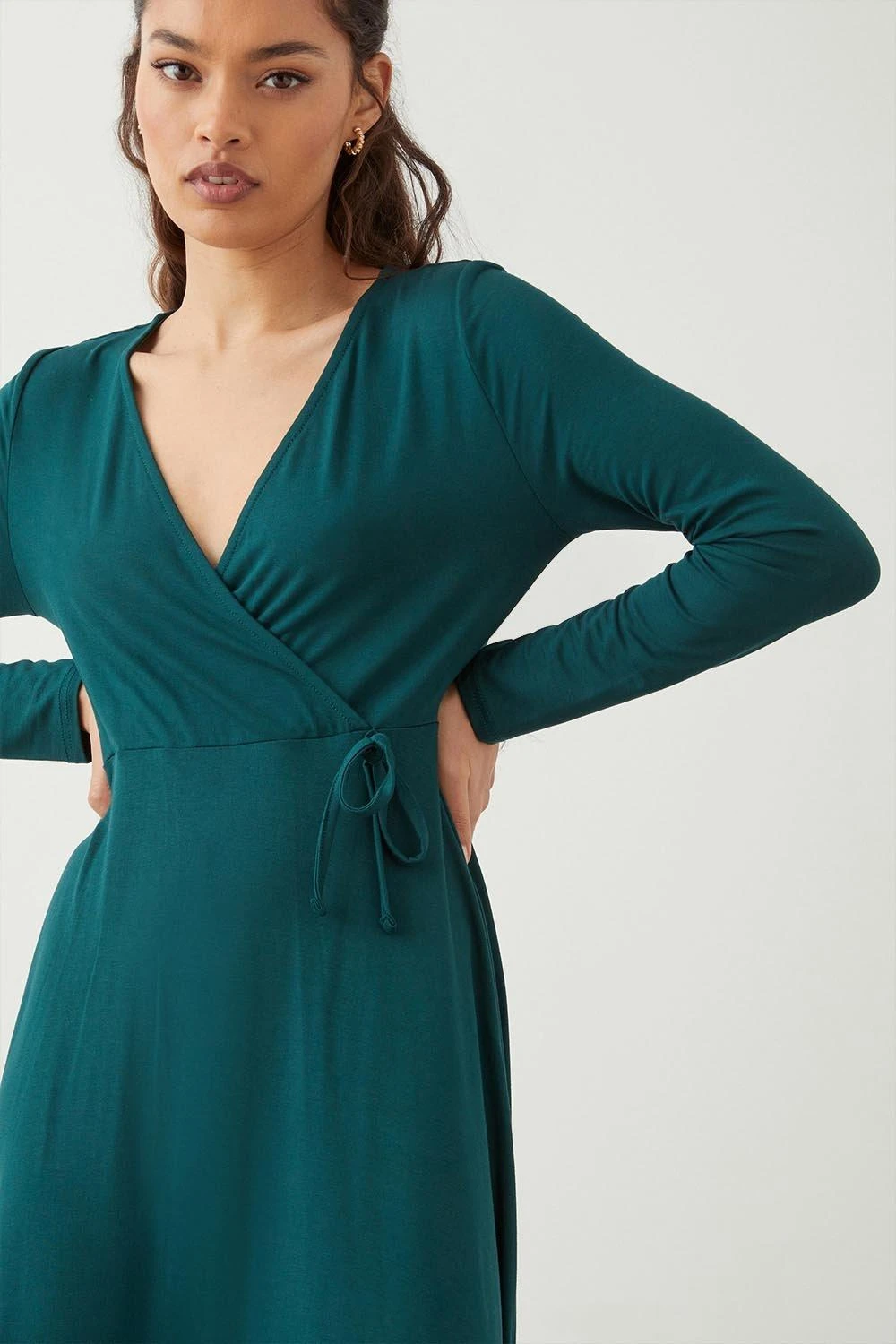 Dorothy Perkins Petite Dark Green Wrap Midi Dress