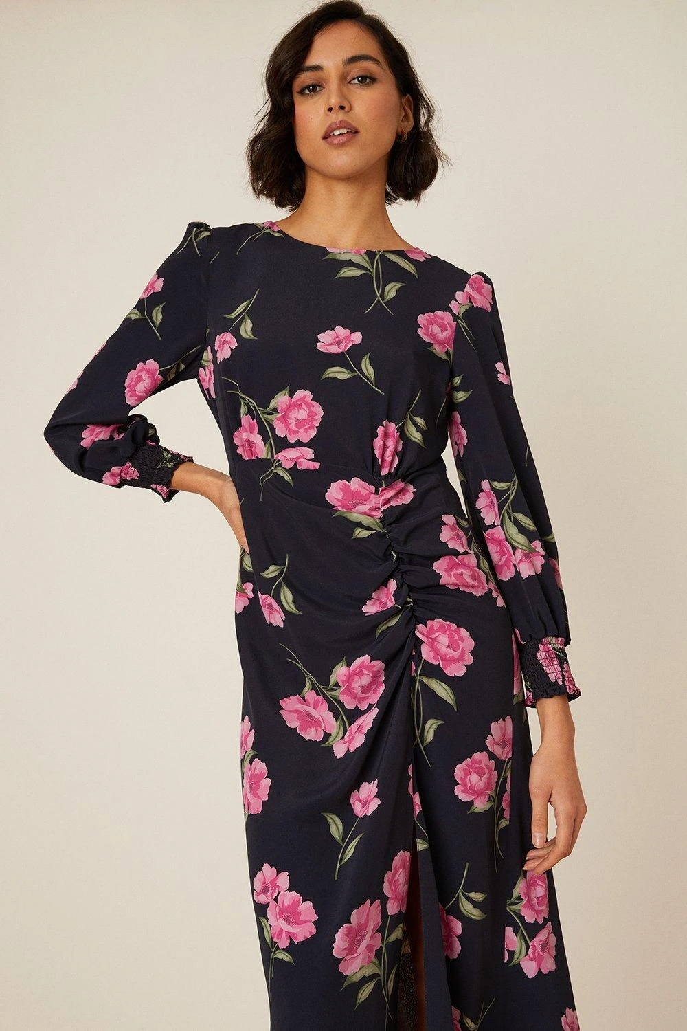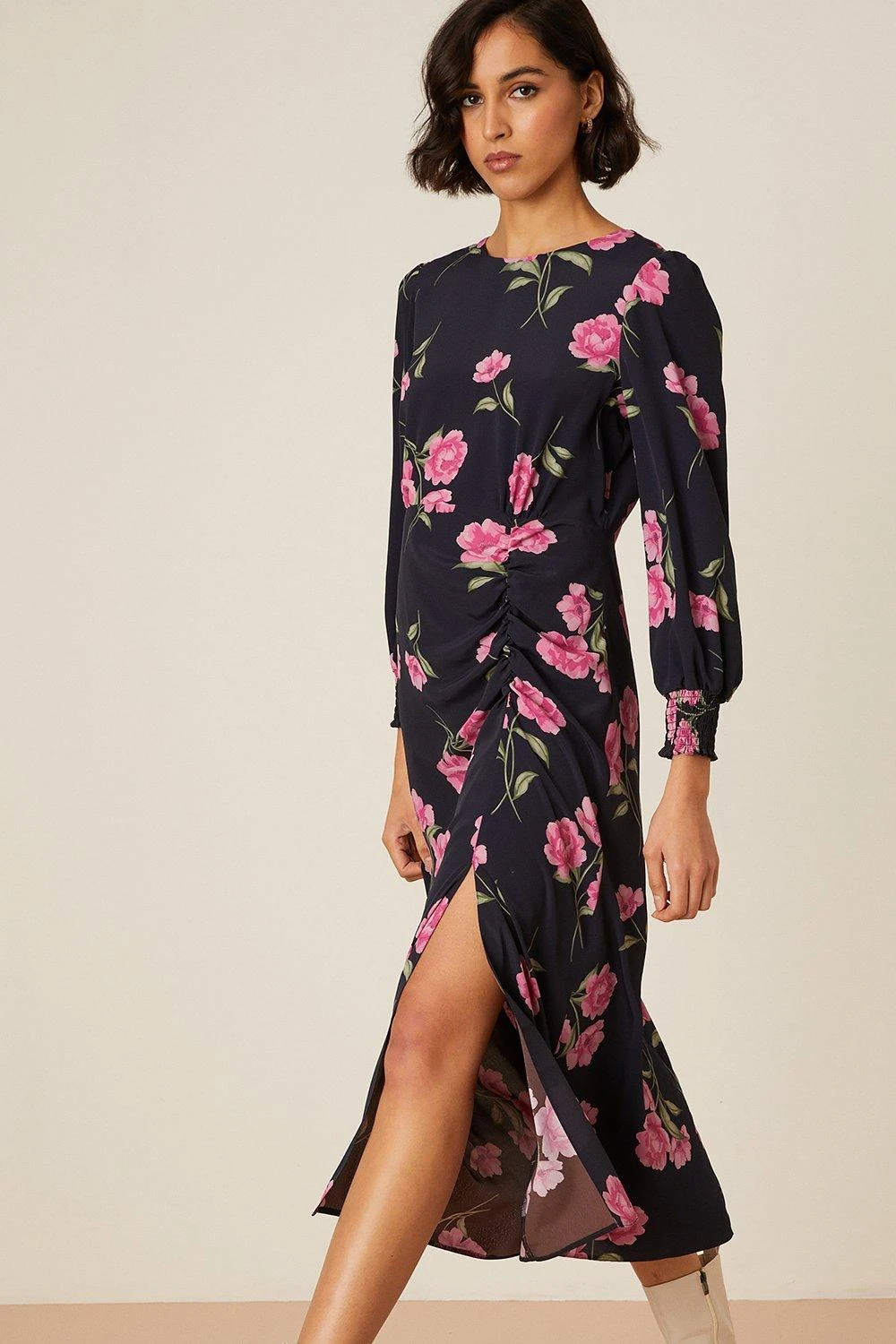 Dorothy Perkins Pink Floral Ruched Midi Dress