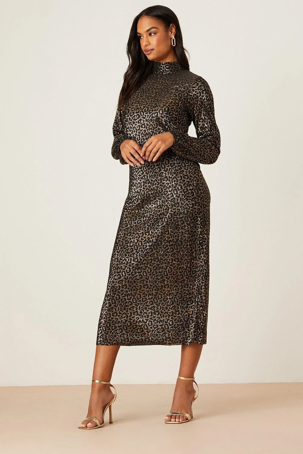 Dorothy Perkins Plisse High Neck Animal Midi Dress