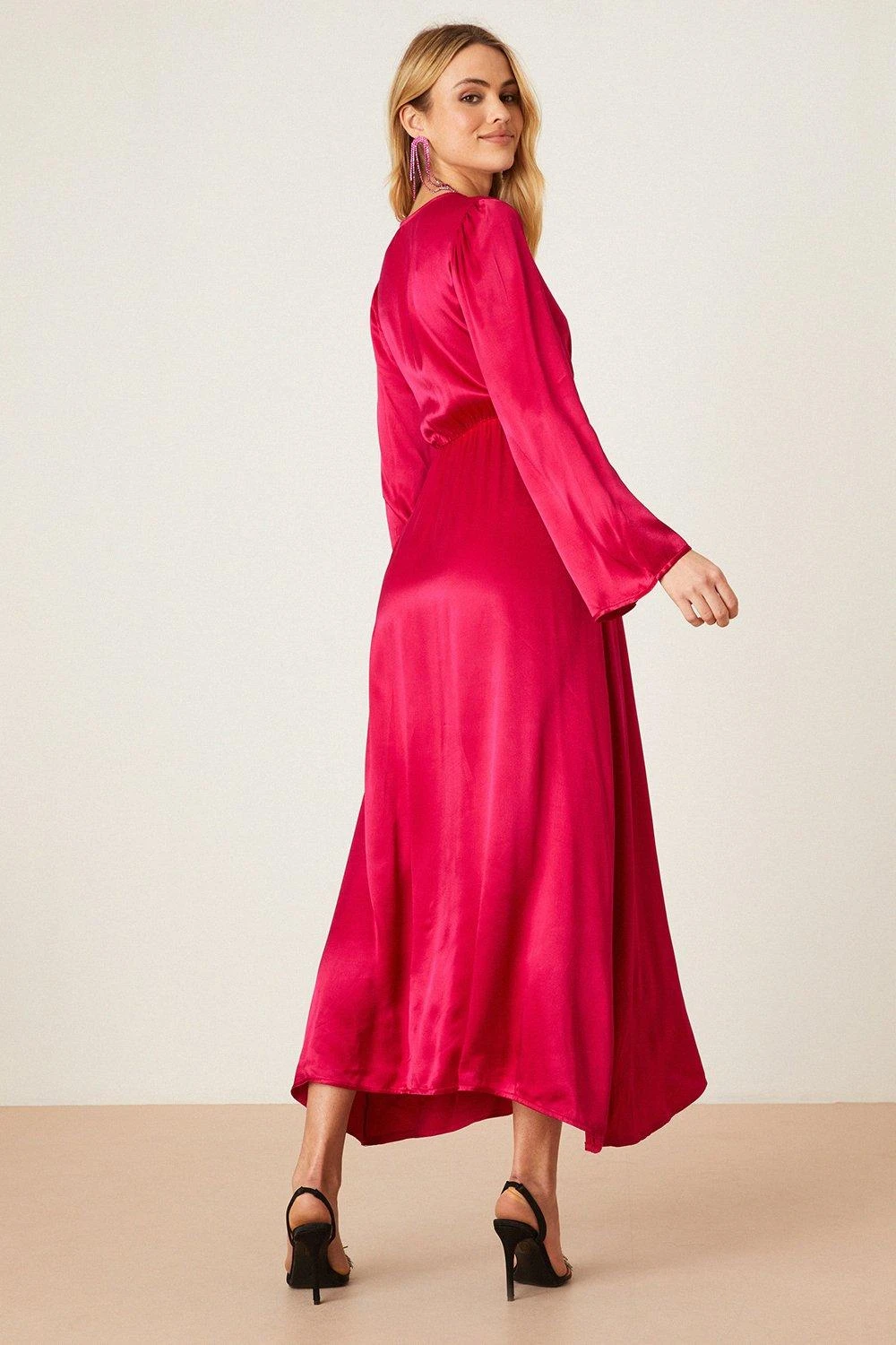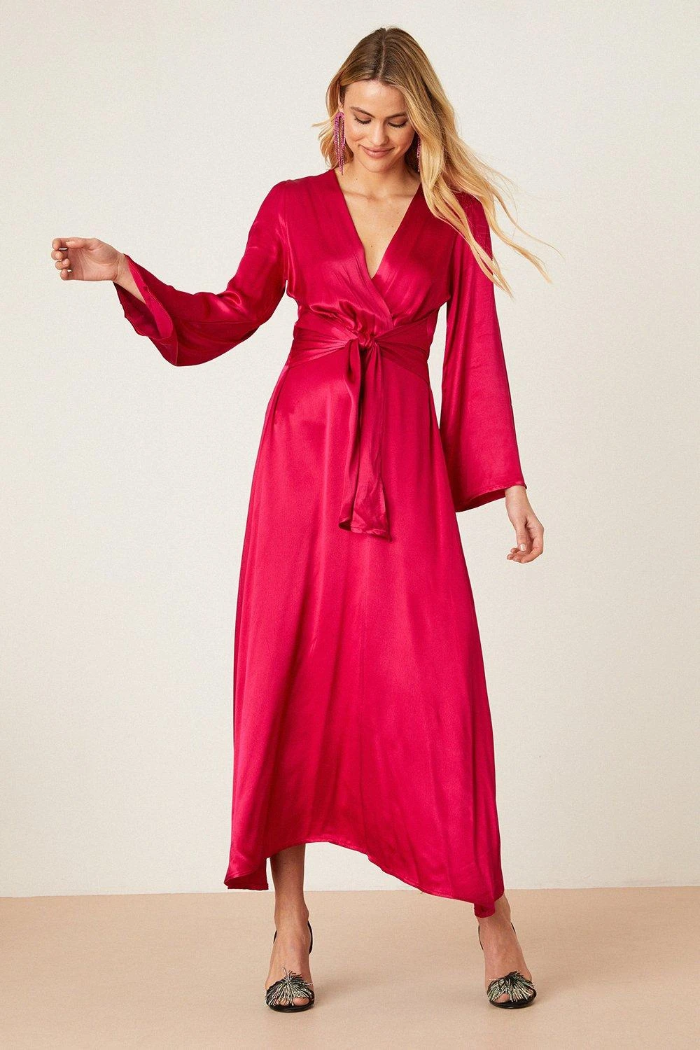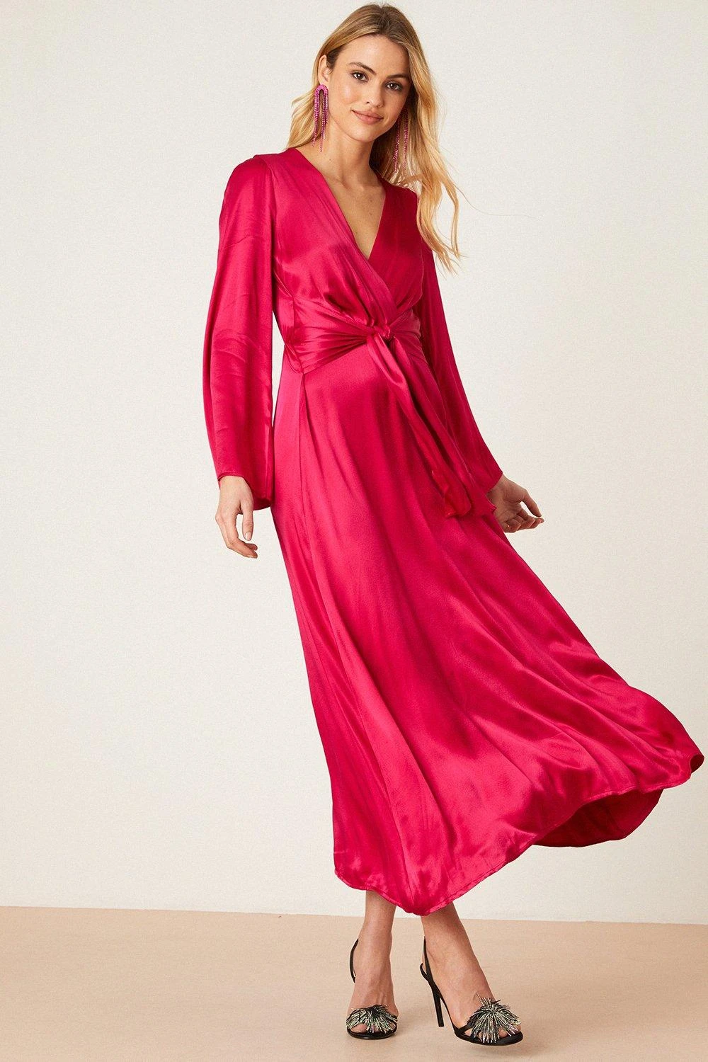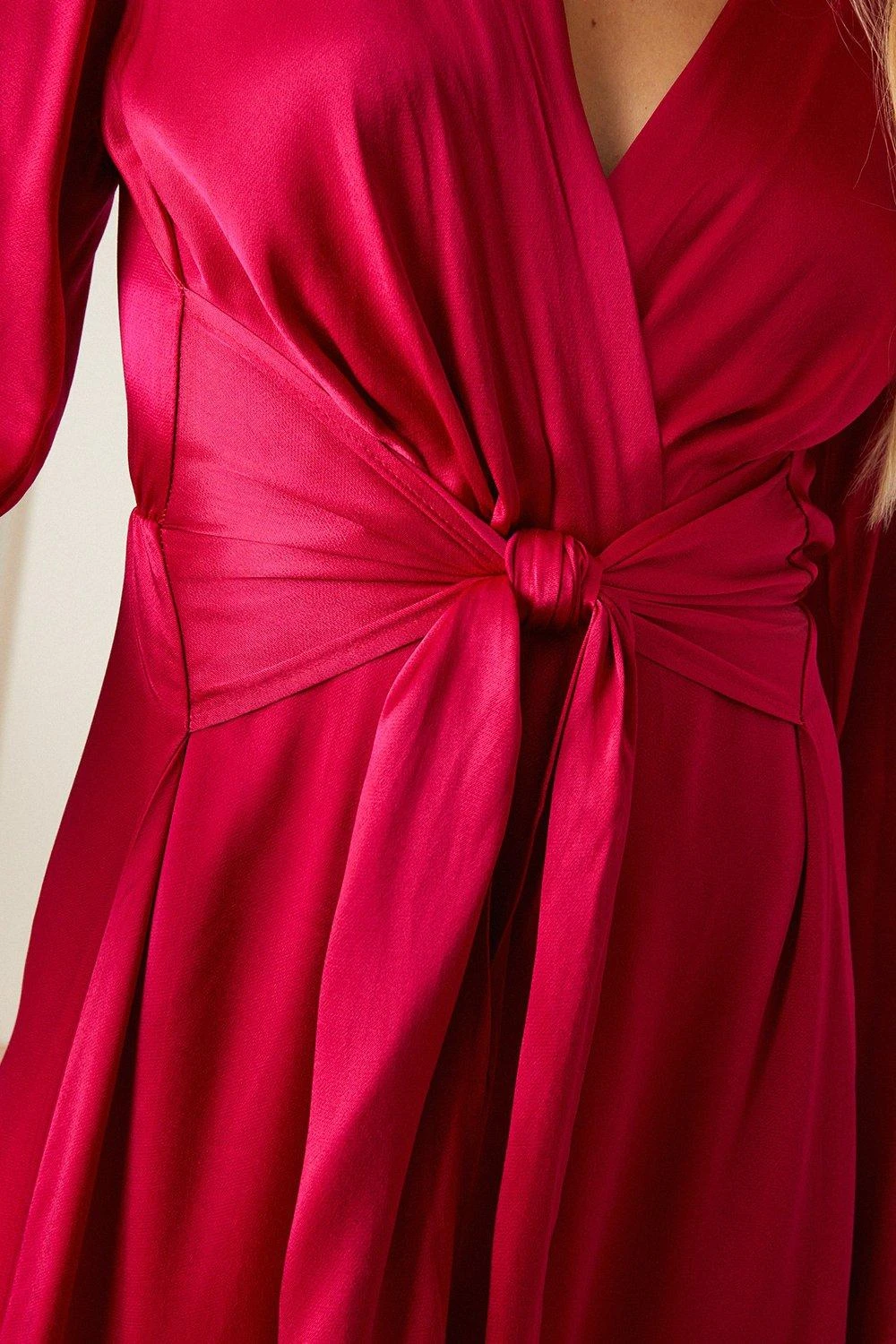Dorothy Perkins Premium Pink Satin Tie Front Midi Dress