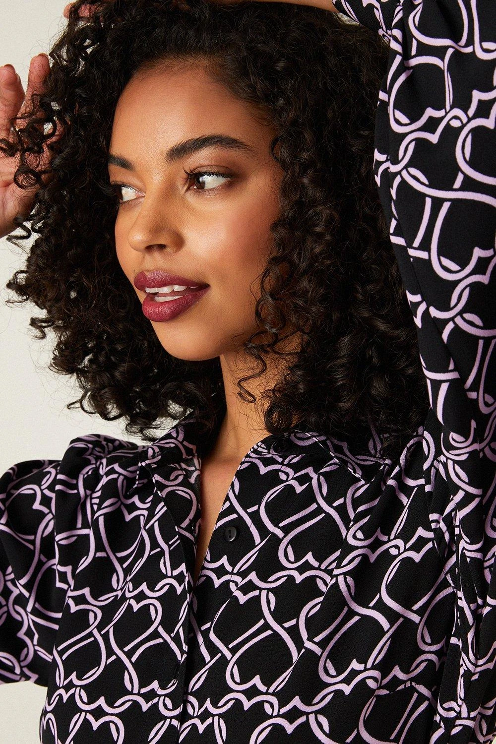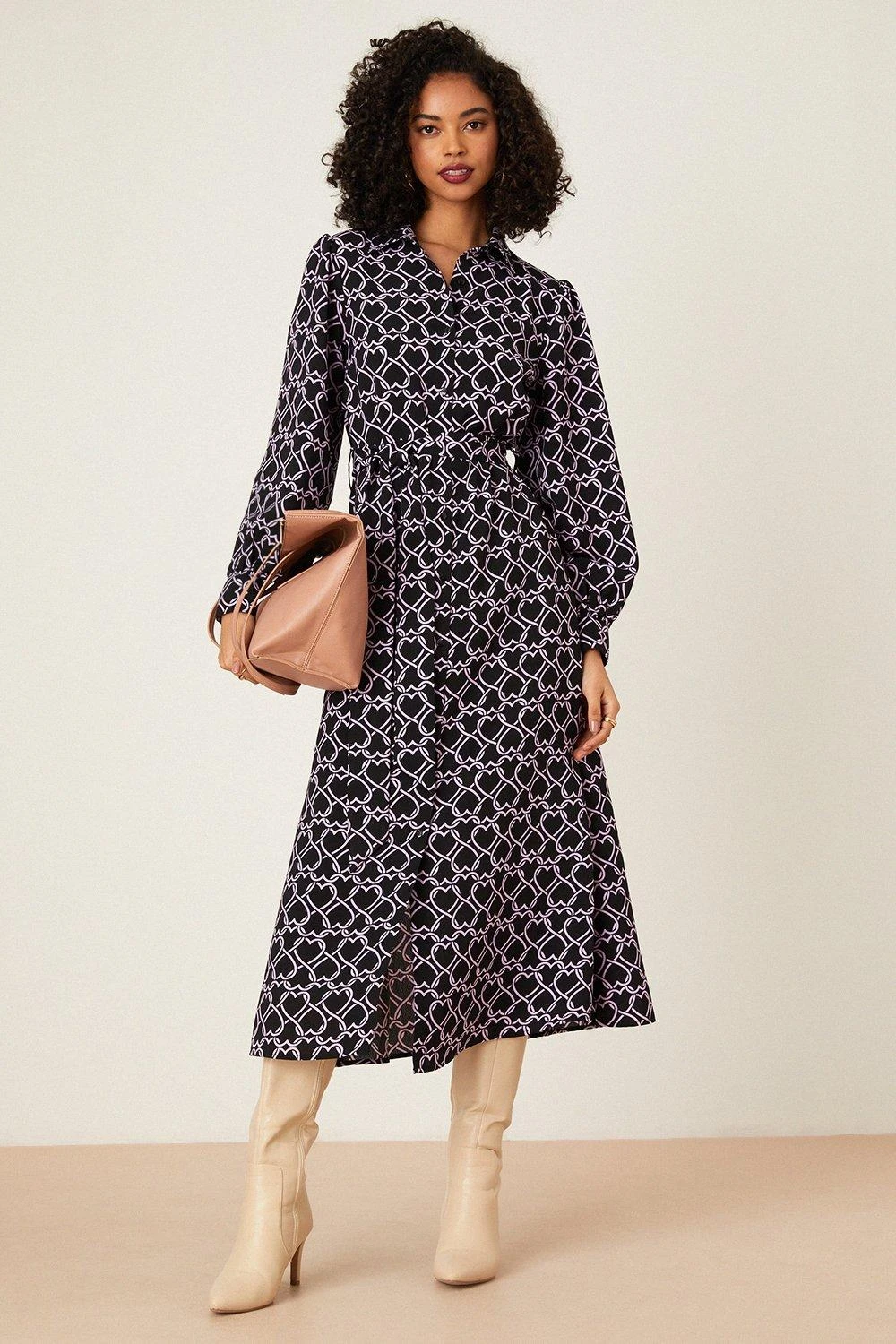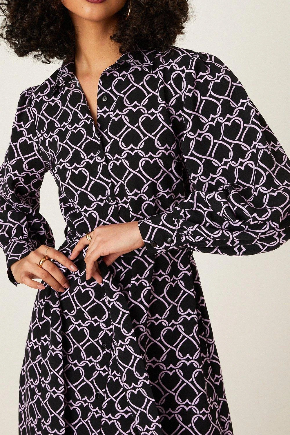 Dorothy Perkins Purple Heart Print Midi Shirt Dress