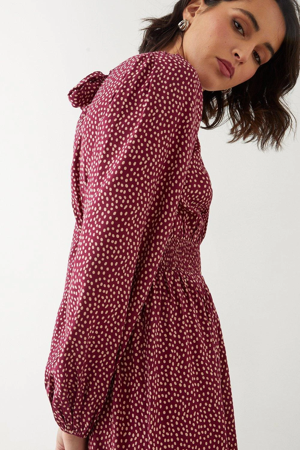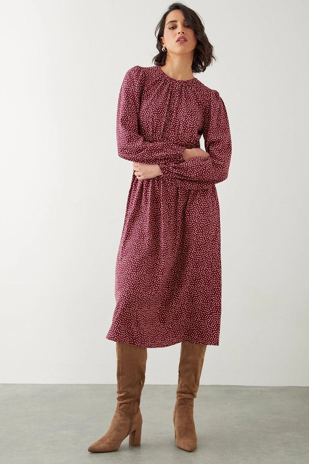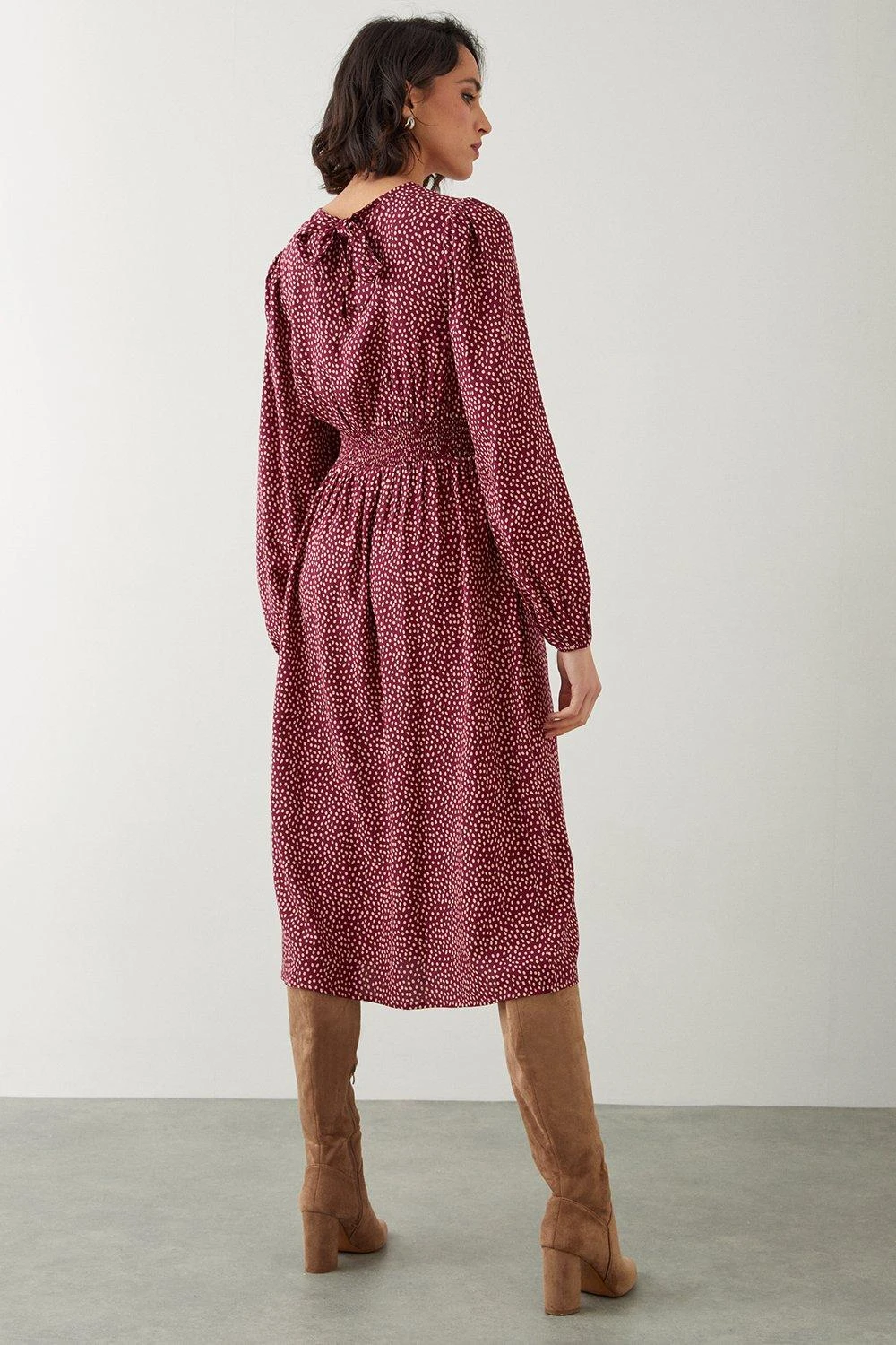 Dorothy Perkins Red Spot Shirred Waist Keyhole Midi Dress
