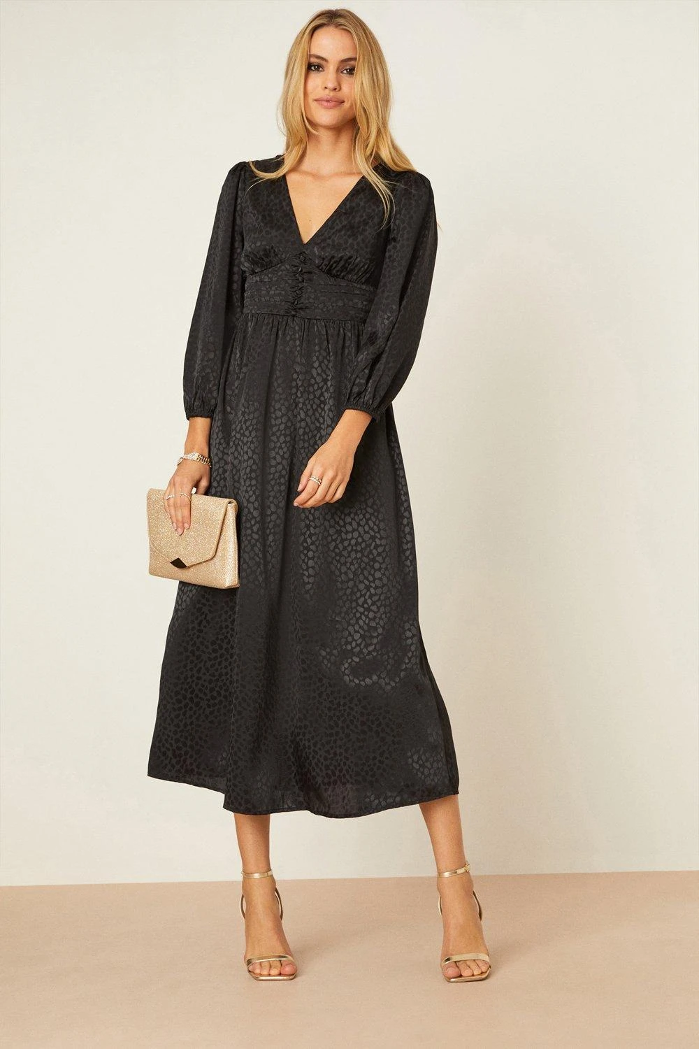 Dorothy Perkins Satin Jacquard Button Front Midi Dress