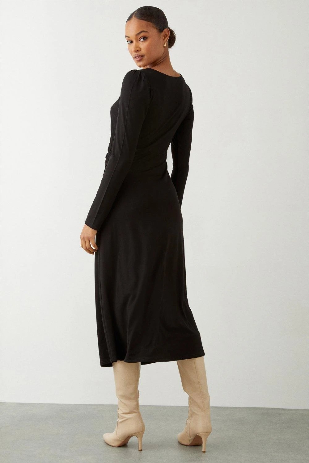 Dorothy Perkins Scoop Neck Long Sleeve Ruched Midi Dress