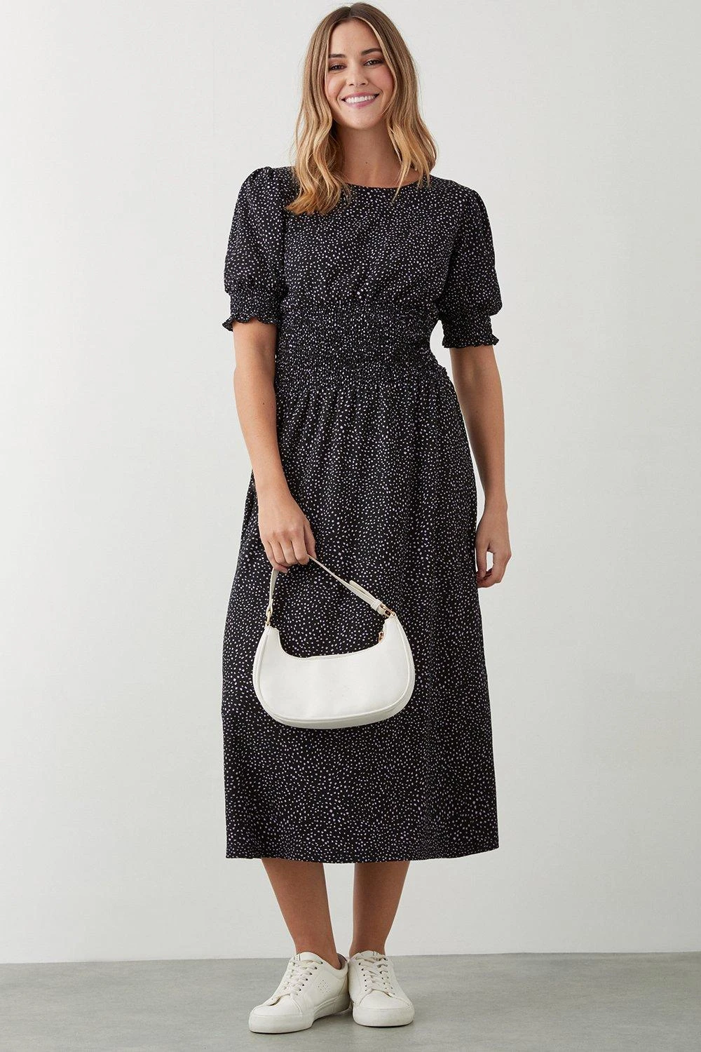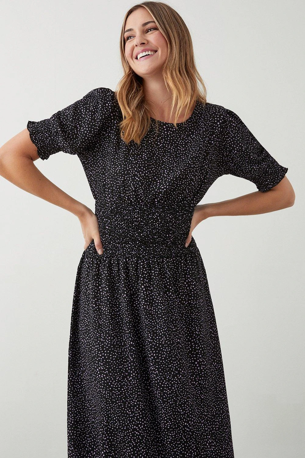Dorothy Perkins Spot Print Shirred Waist Midi Dress