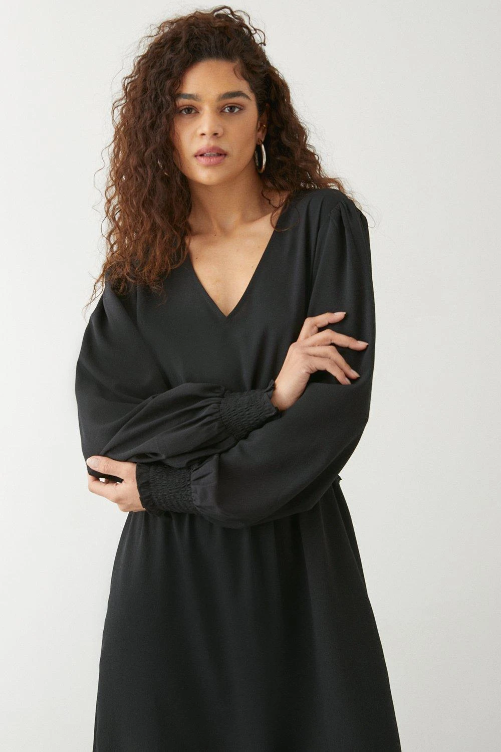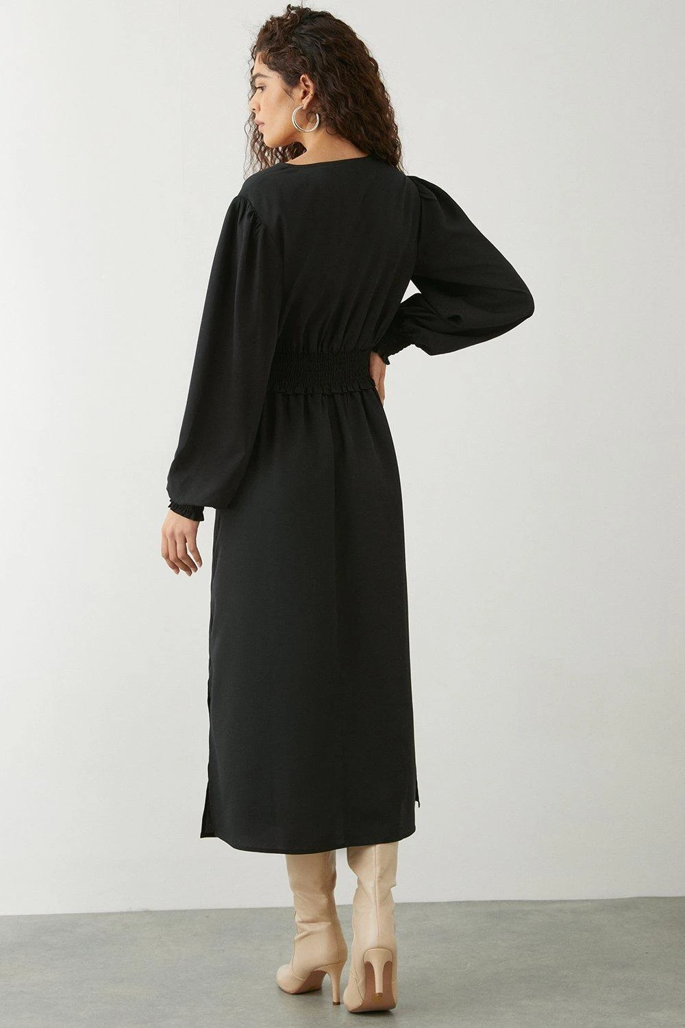 Dorothy Perkins Tall Black Shirred Waist Midi Dress
