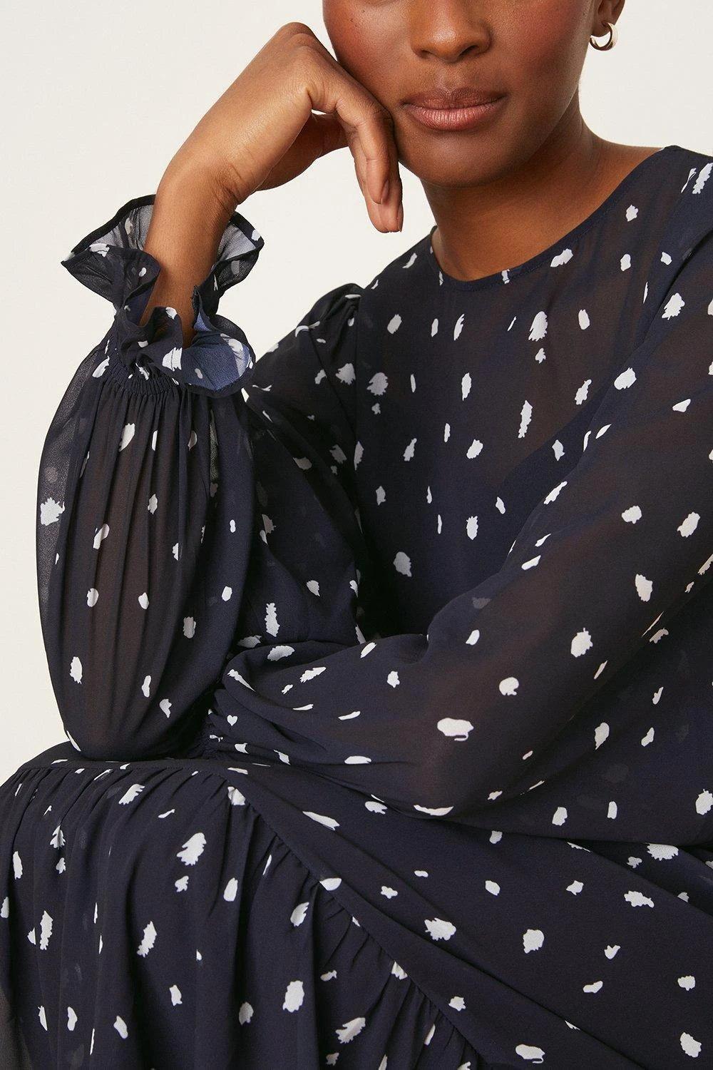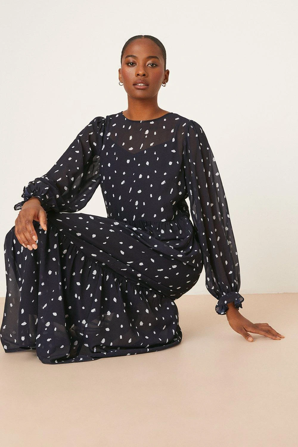 Dorothy Perkins Tall Chiffon Navy Spot Tiered Midi Dress