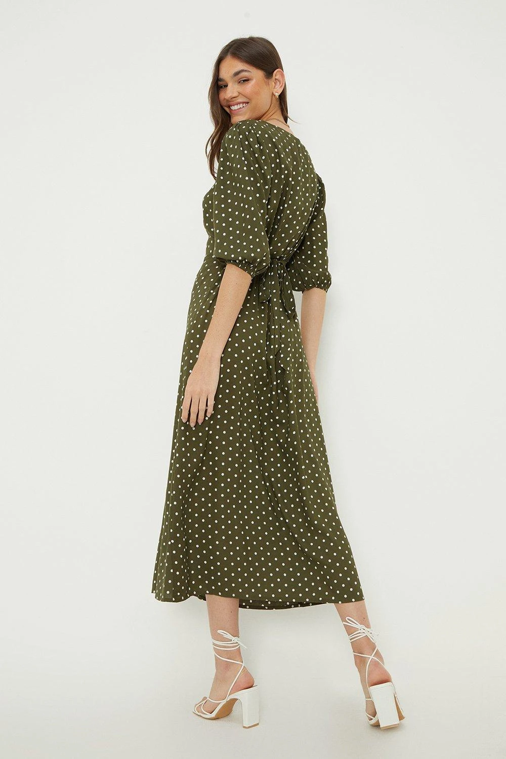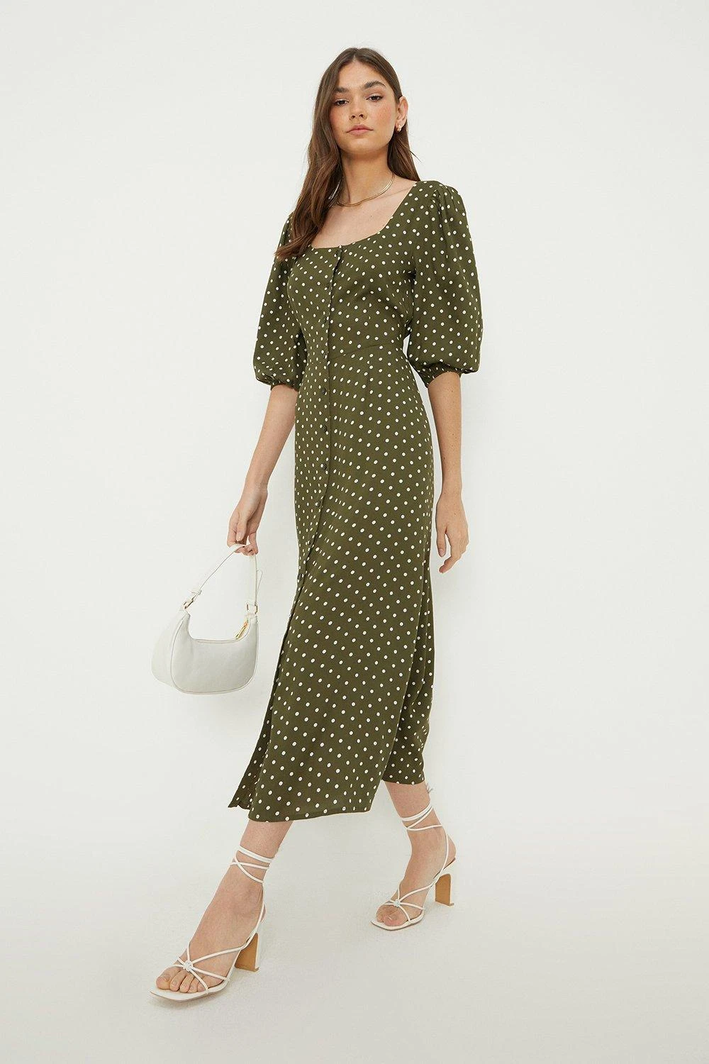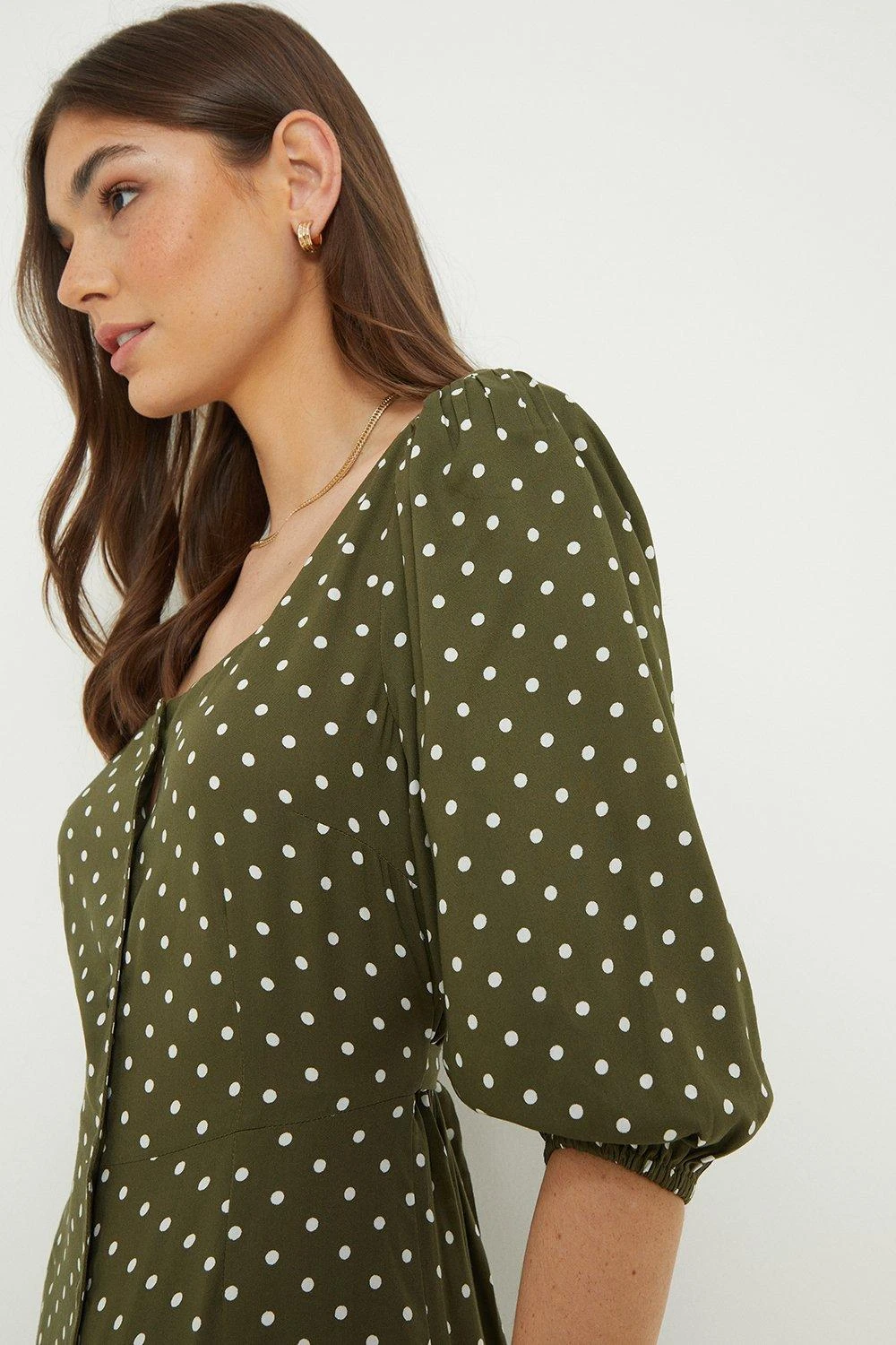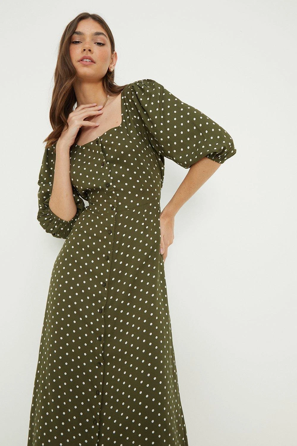 Dorothy Perkins Tall Khaki Spot Button Through Midi Dress