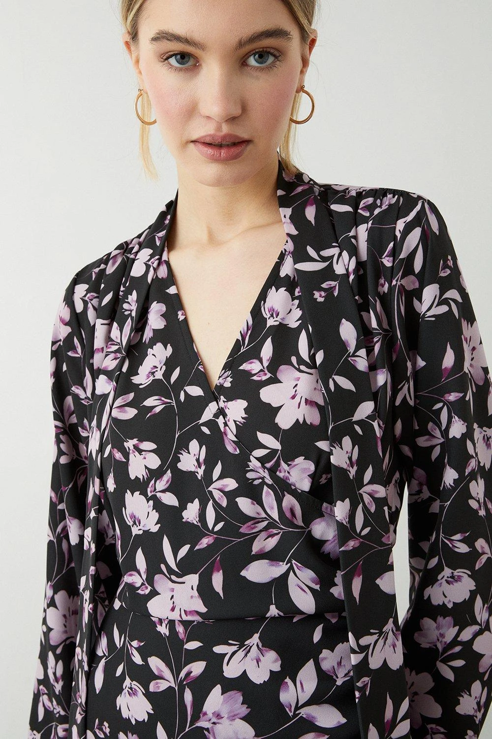 Dorothy Perkins Tie Neck Floral Ruched Midi Dress