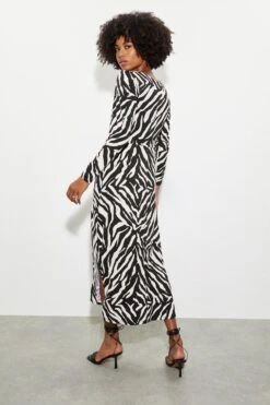 Dorothy Perkins Zebra Long Sleeve Sweetheart Midi Dress