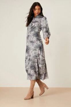 Dorothy Perkins Twist Neck Snake Print Midi Dress